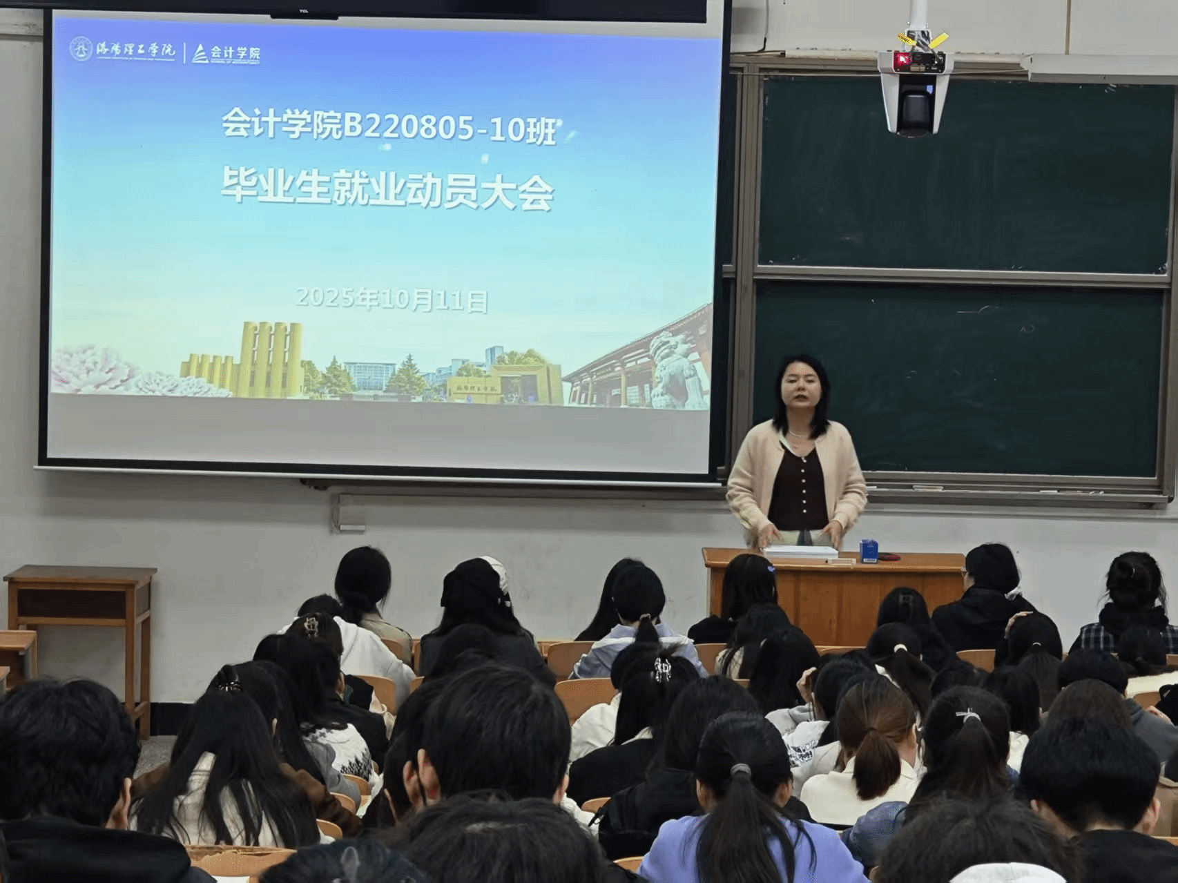 活动分两大环节有序开展。集中讲授环节,毕业班辅导员围绕就业形势、简历制作、签约流程等要素与实用技巧展开系统讲解,并结合学生特点,梳理出学生因“专业是否对口”“简历与岗位适配度低”等共性问题,并针对性进行现场讲解与指导。总结往年就业数据上传出现的问题和注意事项,力求2026届毕业生就业数据统计更加顺畅。