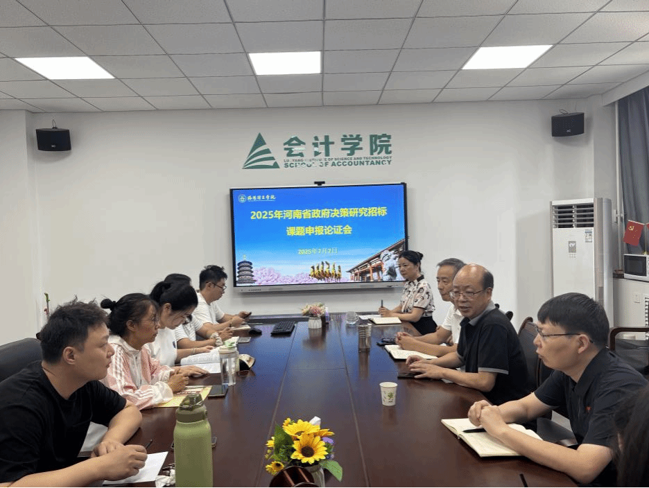 为进一步提升学院高级别科研项目立项成功率,7月7日上午9点,在学院三楼会议室召开2025年度河南省政府决策研究招标课题论证会。本次论证会特邀经济与管理学院金勇强博士、河南科技大学王娟博士现场指导,学院副院长张自巧博士、吕玉辉博士也作为专家为申报教师提供悉心指导。会计学科组骨干教师参加本次会议。