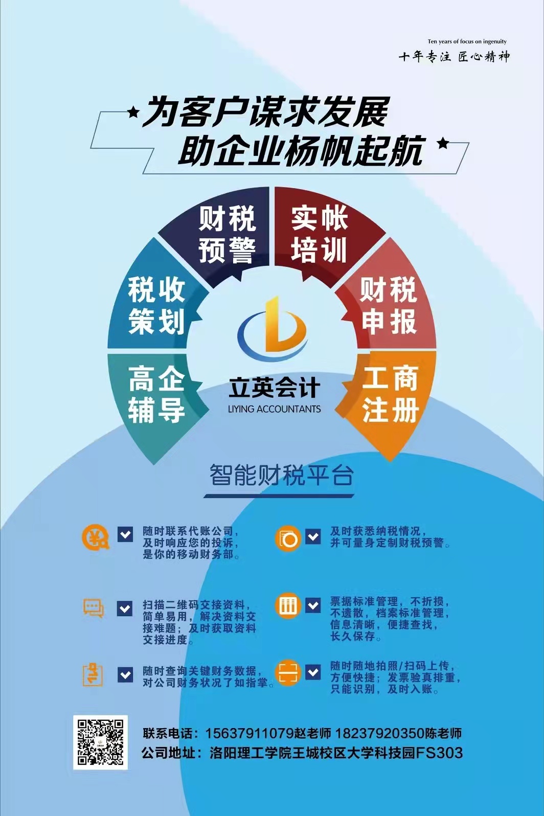 公司简介:洛阳立英会计服务有限公司坐落在乐鱼(中国)王城校区科技大楼,是洛阳市财政局审批、工商局注册的专业财务公司。公司团队战经验丰富。已有二十多年丰富的财税经验,足以为您提供满意的服务!已经为500多家企业提供过财税服务,涉及洛阳市区,新安县,伊川县,汝阳县,洛宁县,郑州等地区的企业。