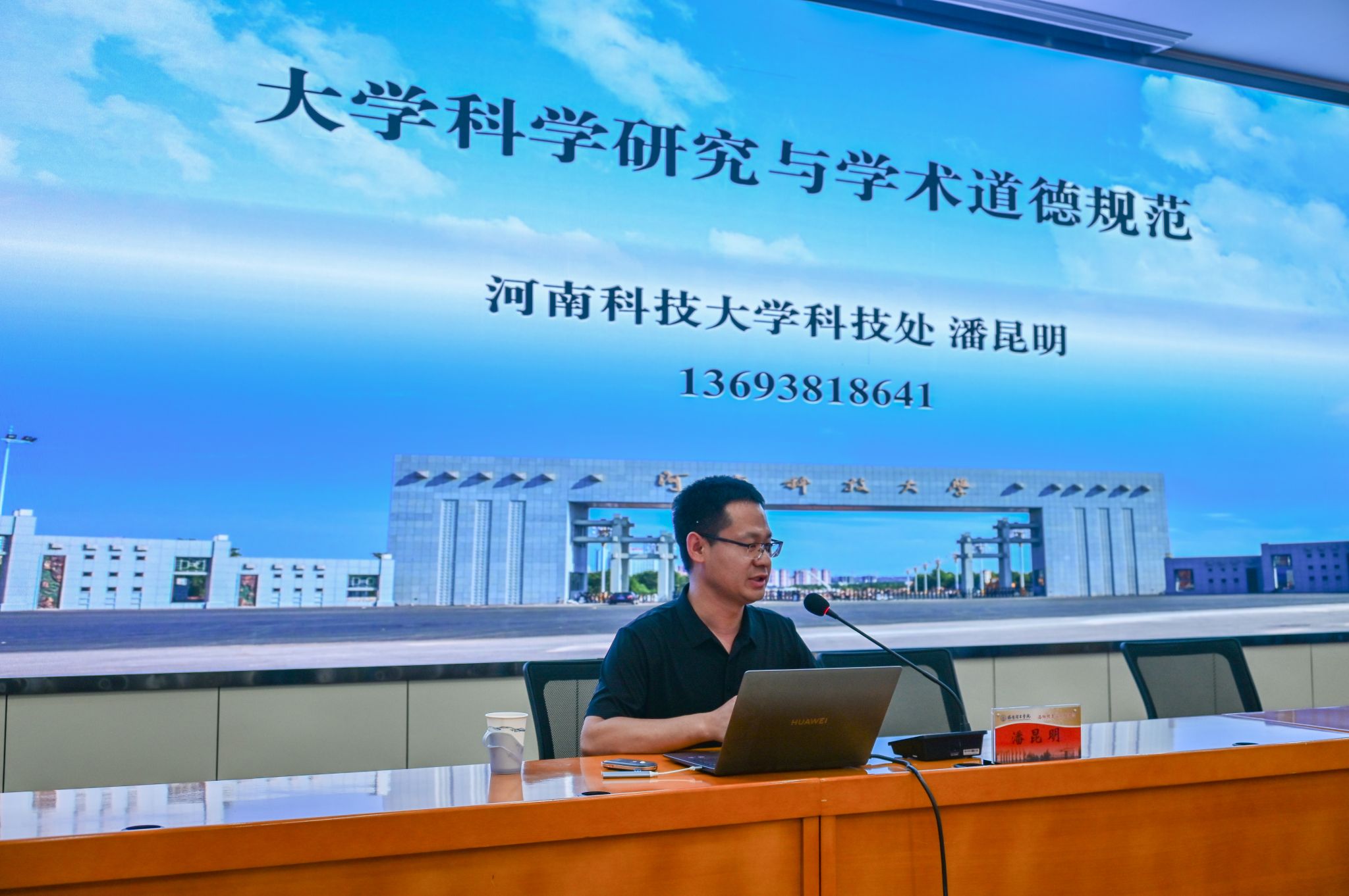 为加强学术规范教育,提高学术诚信意识,促进科研学术能力和学术道德素养同步提高,4月24日下午,河南科技大学潘昆明教授受邀在王城校区办公楼二楼报告厅作题为《大学科学研究与学术道德规范》的专题讲座,学校各二级学院院长(主任)、主管科研工作副院长(副主任)、科研秘书、科研骨干参加讲座。