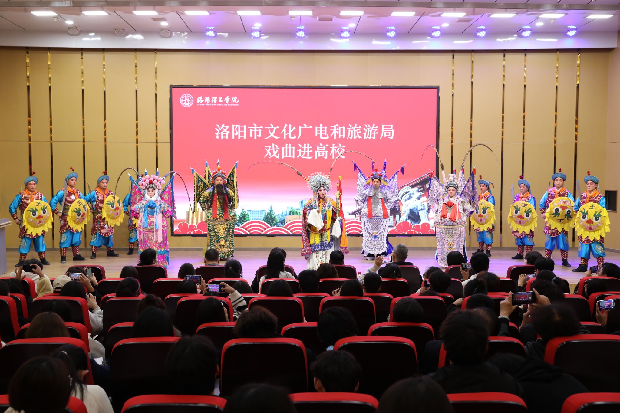 启动仪式后,洛阳豫剧院带来了两场精彩的演出。在王城校区图书信息中心报告厅演出豫剧《穆桂英挂帅》,在开元校区图书馆报告厅演出折子戏专场,精彩的演出赢得师生阵阵掌声。(图:韩超旭 王子航 郑涵 冯亚林 徐中超 李若玉 李尹宇 赵旭帆 齐汉鹏)