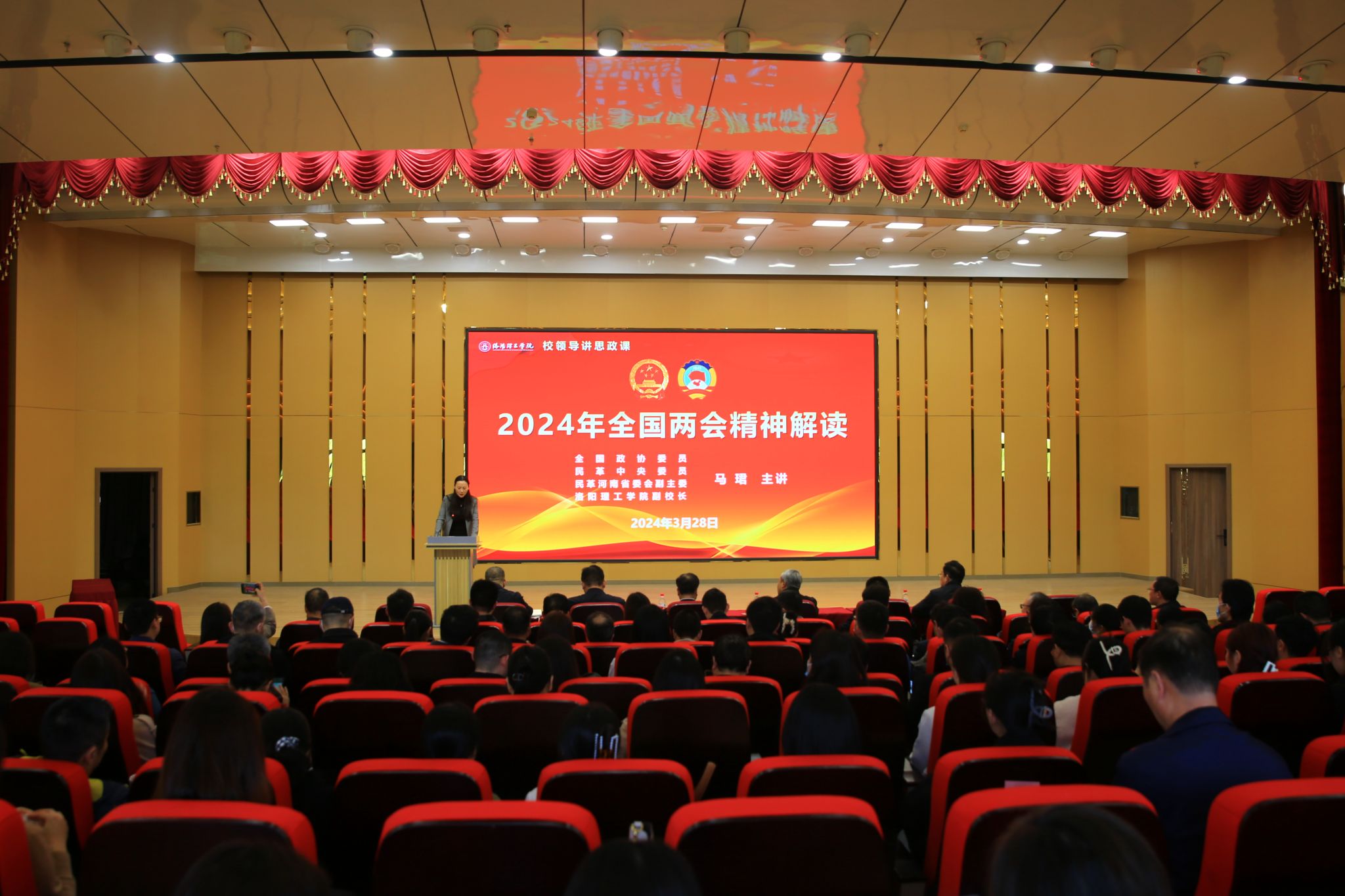 3月28日下午,我校在开元校区图书馆报告厅举办形势政策报告会,全国政协委员、民革河南省委会副主委、副校长马珺对2024年全国两会精神进行深入解读。党委统战部、发展规划处、财务处、国际交流合作处、信息化技术中心、经济与管理学院、会计学院全体教职工和民主党派、统战团体代表参加会议。