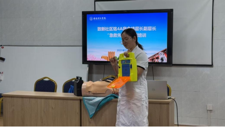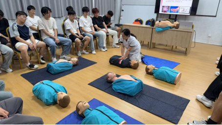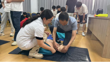 在实操环节,丁笑笑老师利用人体模型现场示范急救动作,从胸外按压的力度把控到人工呼吸的规范操作,逐一分解演示。