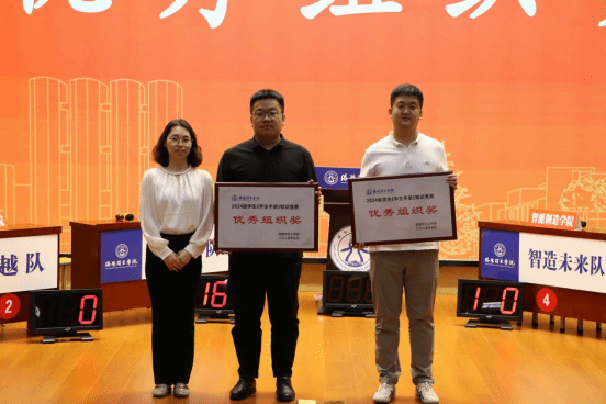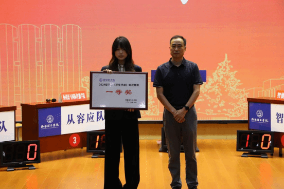 本次竞赛以深入学习领会党的二十届三中全会精神核心要义和严格遵守《学生手册》管理规定为核心内容。经过前期各学院的初赛选拔和学校层面的复赛角逐,晋级决赛的各支队伍在舞台上展现了扎实的理论功底、敏捷的应变能力和昂扬的精神风貌。比赛现场气氛热烈,我院代表队选手沉着冷静、稳扎稳打,在答题环节配合默契、策略得当,充分展现了新时代大学生的学识风采与团队精神。我院荣获一等奖和优秀组织奖,邵悠然、姜新煜两位老师被授予“优秀指导教师” 称号。