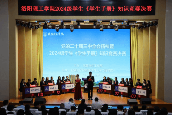 5月29日下午,我校党的二十届三中全会精神暨2024级学生《学生手册》知识竞赛总决赛在王城校区图书信息中心报告厅成功举办。学生处处长杨勇、学生处副处长王艳敏、开元校区一站式学生社区主任周志平、王城校区一站式学生社区主任丁晨出席活动并担任评委。部分二级学院党委副书记、学工办主任、辅导员及学生代表等400余人参加活动。本次活动由党委学生工作部主办,智能建造与土木工程学院承办。