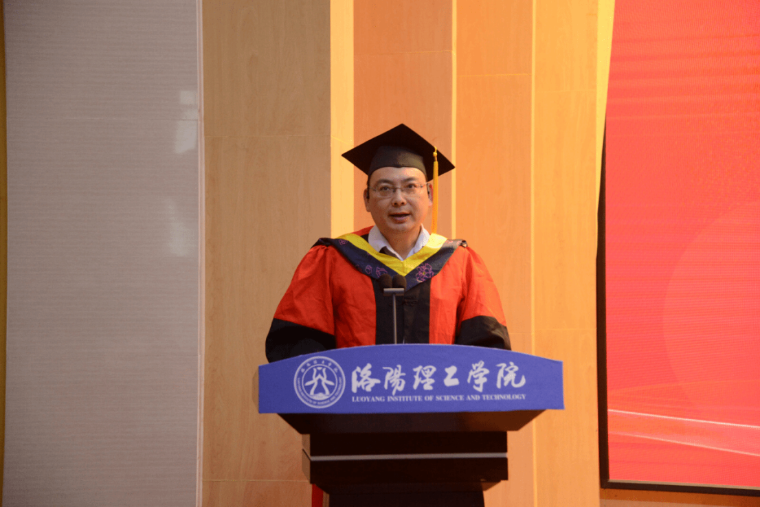 优秀校友代表、2012届校友、洛阳懿皇地产集团新媒体运营总经理孙连营发言,他满怀深情地回忆了大学时代的珍贵片段,并结合自身在房地产领域的多年打拼,向学弟学妹们倾囊相授。他勉励全体毕业生勇担时代使命,时刻铭记母校的优良传承与精神内核,在未来的道路上坚韧不拔、勇往直前。