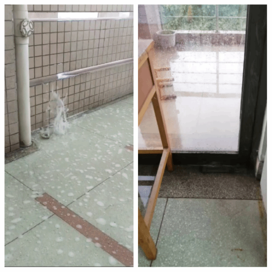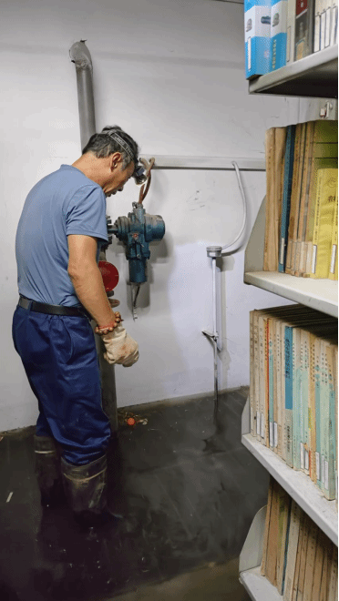 公共教学楼A楼因雨水倒灌,排水泵失灵等原因导致书库进水。图书馆老师联合后勤老师第一时间进行水泵维修、清理地面积水,险情得以控制。同时出于安全考虑,及时在门口设置防汛挡板及沙袋进行进一步防范。