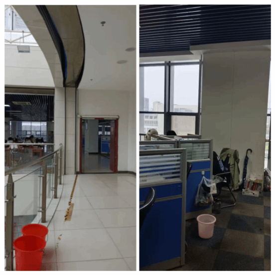 因雨势太大,图书馆王城校区二楼社科书库、三楼自科书库出现严重渗水现象,四楼文学书库出现漏水现象;开元校区二楼自科二书库、三楼现刊阳台、三楼外阳台等地渗水严重。各书库老师及时发现险情,加班加点紧急清理积水,确保书库图书安全。