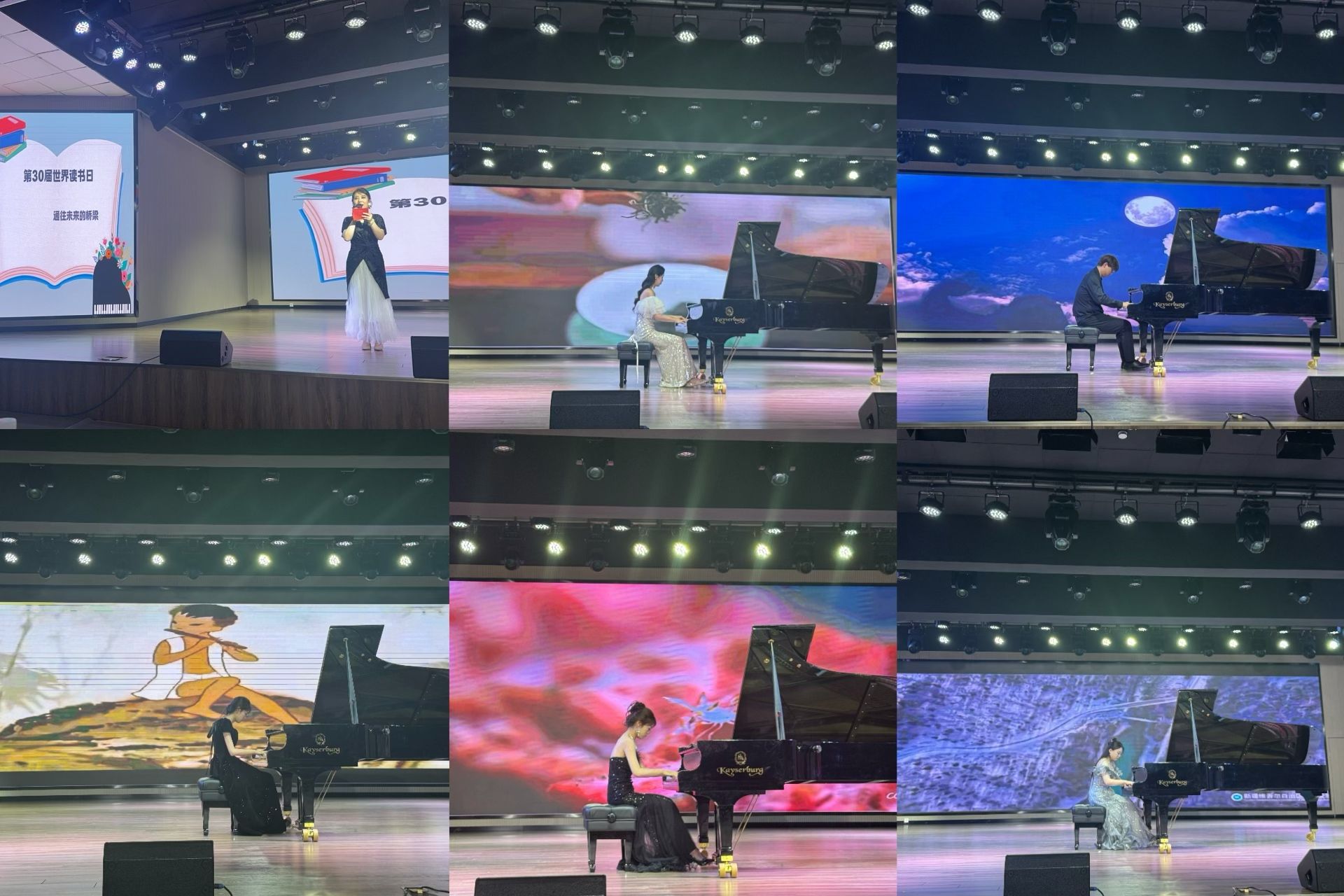 2025年4月29日晚19:00,由校图书馆、教育科学与音乐学院主办第三十届世界读书日系列活动之的“琴键上山河诗韵”中国钢琴作品音乐会在开元校区演出剧场303精彩上演。