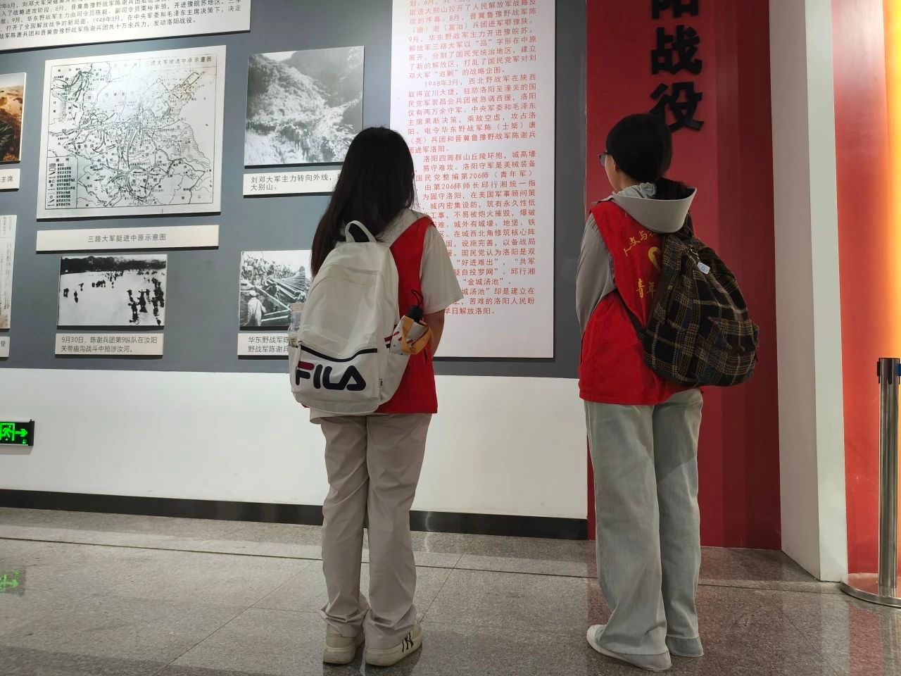 在八路军驻洛办事处纪念馆,队员们参观了“抗战堡垒红色枢纽”史实展览和“社会捐赠文物陈列”专题展览。馆内一件件珍贵文物、一张张历史照片、一段段生动影像,重现了八路军驻洛办事处在抗战时期承担沟通豫西地区与红色革命根据地人员、情报、物资输送的重要任务,队员们深刻感受到革命先辈们为抗战胜利做出的卓越贡献。