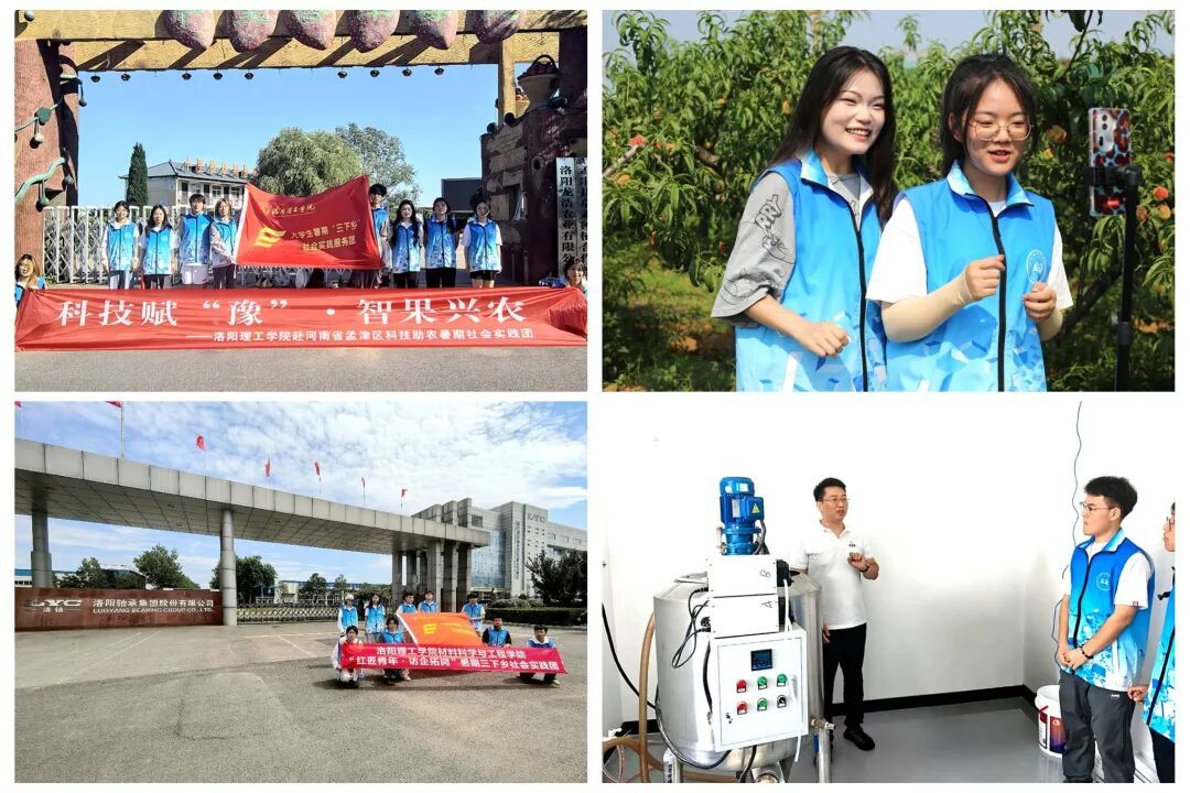 材料科学与工程学院“科技赋豫,智果兴农”暑期社会实践团在孟津区“十里香”生态园开展助农直播与技术调研,探索科技兴农路径;“红匠青年·访企拓岗”暑期社会实践团则深入洛轴、鸿元轴承等四家企业,实地学习产业创新与人才需求。实践团成员走进企业车间和农业基地,开展技术服务和产业调研,将创新理念与专业实践相结合,在服务地方和企业发展的过程中提升了创新创业能力,展现青年以科技赋能产业进步的探索精神。