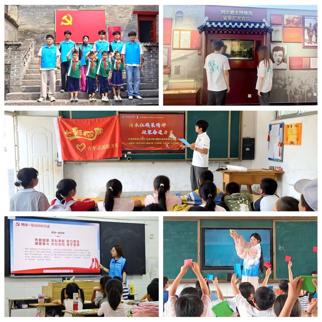 电力电气工程学院“心手相牵护童心,青春筑梦暖乡村”暑期社会实践团联合电力电气工程学院“动你心弦”社团党支部成员,带领小学生参观八路军驻洛办事处纪念馆,开展“大手牵小手”红色研学。会计学院“红色会计”暑期社会实践团赴平顶山、洛阳等多地红色场馆,追寻红色金融历史。艺术设计与服装学院“红渠铸魂·青年启航”暑期社会实践团赴甘肃、山西及洛阳多地中小学、幼儿园开展红旗渠精神宣讲,覆盖200余人次;“星空瞭望”暑期社会实践团在洛阳市多个教育场所开展“两弹一星”主题实践活动。外国语与国际传播学院“助力黄庄小学教育”暑期社会实践团在黄庄小学开展爱国主义支教,传播红色精神。广大学子在走访红色地标、宣讲革命精神的过程中,加深了对党史国史的理解,坚定了理想信念,也让红色基因在更广泛的群体中得以传播和延续。