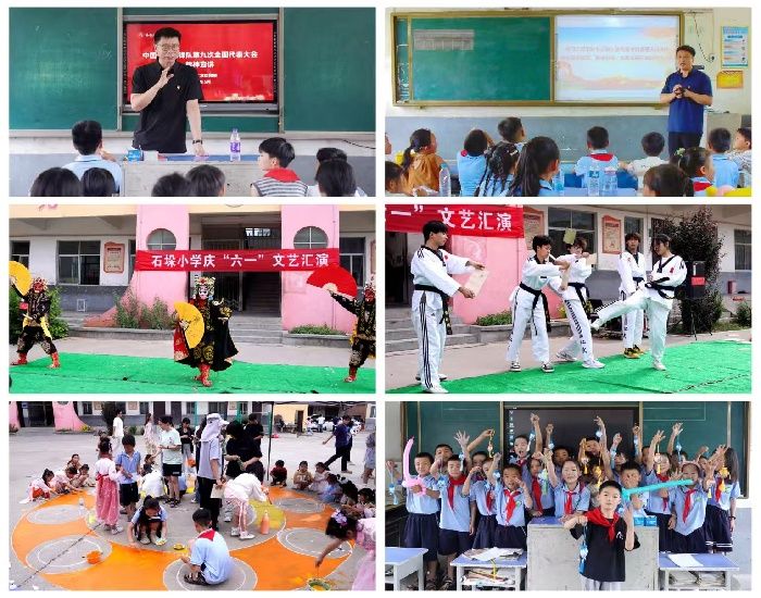 在六一国际儿童节来临之际,5月30日,校团委、艺术设计与服装学院、青年志愿者约50名师生赴学校定点帮扶的宜阳县白杨镇石垛村石垛小学开展“童心向党,艺启成长”庆“六一”系列活动,通过理论宣讲、文艺演出、民俗体验、艺术教育等方式为小朋友送去祝福和慰问。
