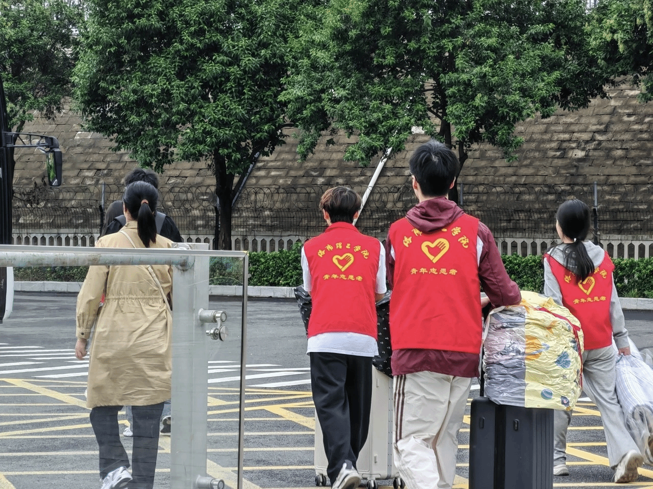 在一趟又一趟的搬运中,志愿者们汗水浸透了红马甲,但笑容却始终洋溢在脸上,志愿者们用实际行动践行着“奉献、友爱、互助、进步”的志愿精神,成为了展示学校人文关怀与育人氛围的流动窗口和最美名片。他们的出色表现,也赢得了新生、家长以及高铁站工作人员的一致好评。