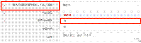 (2)“转入组织是否属于北京/广东/福建”一栏选择“否”。