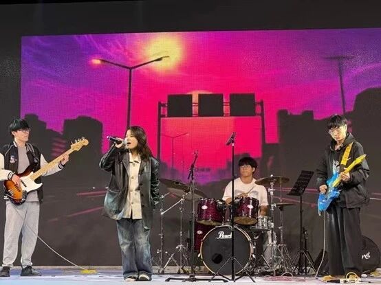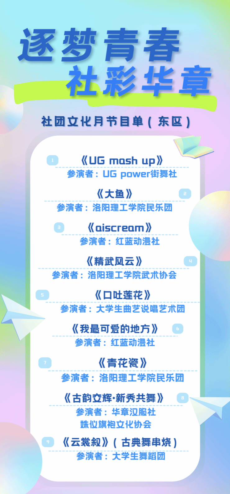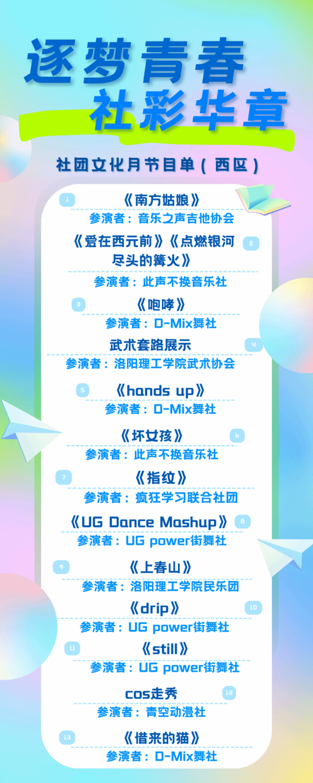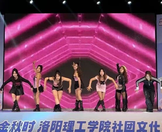 激昂音乐响彻全场,表演者以恢弘阵型舞动,展现力与美的交融。舞台中央,象征希望的光柱冲天而起,展示社团风貌的节目即将到来。