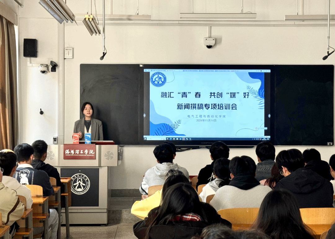 11月14日,电气工程与自动化学院在开元校区教学楼XC105教室举行了以融汇“青”春,共创“媒”好为主题的新闻撰稿专项培训会。在整个培训会过程中,同学们认真聆听,紧抓关键点牢记于心。