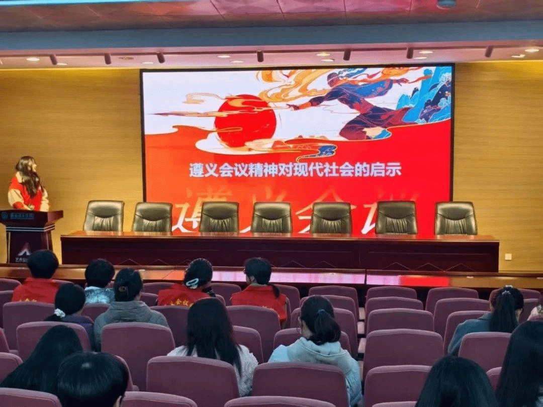 4月26日,艺术设计与服装学院 “遵梦红,忆峥嵘”遵义会议宣讲团在九都校区学术报告厅举行遵义会议精神宣讲会。宣讲团成员以详实史料讲述会议历史背景,重现现场讨论交锋;互动环节中,同学们积极提问交流。此次宣讲让学生深刻理解党的历史,为新时代征程注入精神动力,激励学生不忘初心,书写青春华章。