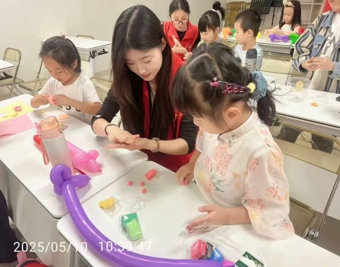 5月11日,智能建造与土木工程学院青年志愿者协会走进洛龙区政和路定鼎门社区,为自闭症儿童及其家长开展亲子活动。活动中,家长参与舞蹈课程舒缓压力,志愿者指导孩子们进行彩纸拼贴与扭扭棒手工创作,带领儿童学习基础武术动作。不仅让孩子们在拼贴动物造型、绘制纸扇过程中展现创造力,也让家长通过舞蹈课程放松身心,通过艺术疗愈与运动互动,为特殊儿童家庭提供情感支持,展现青年志愿者服务社会的责任担当,以实践行动传递温暖关怀。