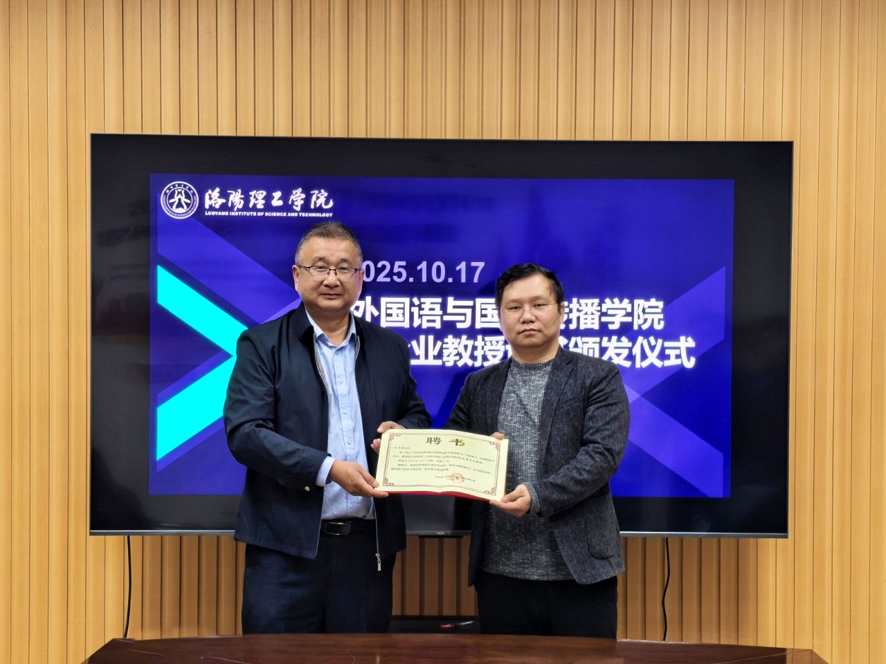 10月7日上午,我院举行客座企业教授证书颁发仪式,正式聘请华邑文旅(洛阳)有限公司创始人刘志伟先生担任学院客座企业教授。