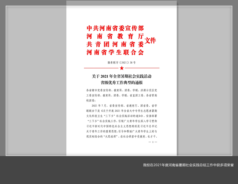 我校在2021年度河南省暑期社会实践总结工作中获多项荣誉