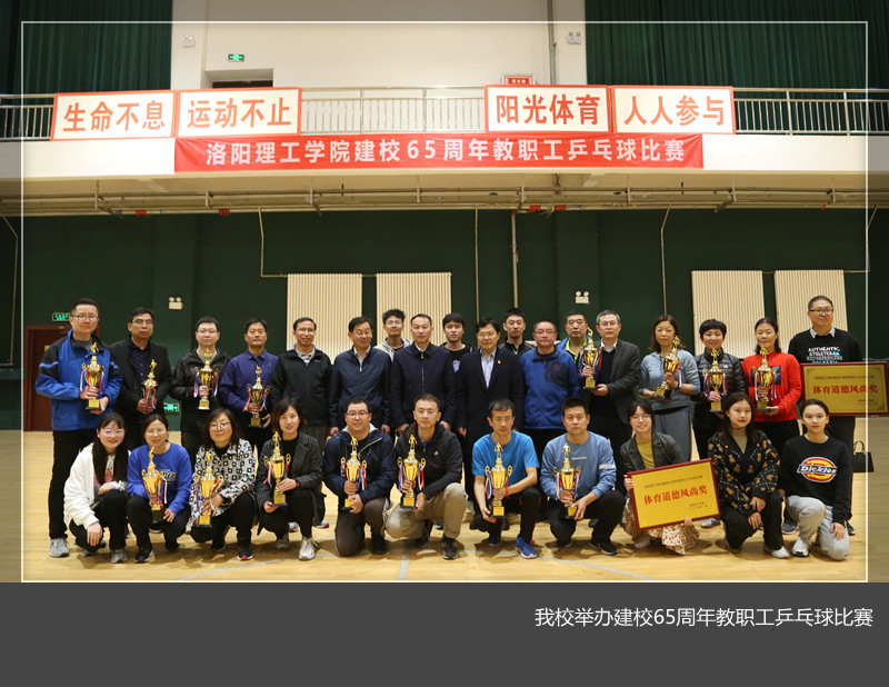 近日,我校在王城校区体育馆举办建校65周年教职工乒乓球比赛,全校24个分工会共210余名教职工运动员和10余名裁判员参与比赛。校党委副书记、工会主席曾涛,副校长胡恩立,纪委书记、监察专员刘楠出席闭幕式并为获奖代表队颁奖。