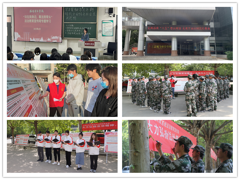 为深入学习贯彻落实习近平总书记关于教育的重要论述和习近平法治思想,进一步推进依法治教、依法办学、依法治校,根据《河南省教育厅、河南省司法厅关于开展全省教育系统法治教育宣传周活动的通知》(教政法〔2022〕96号)有关要求,4月18日至22日,我校各单位积极创新形式,开展了以“法在我身边,尊法我带头”为主题的系列普法宣传教育活动,提升师生法治素养。