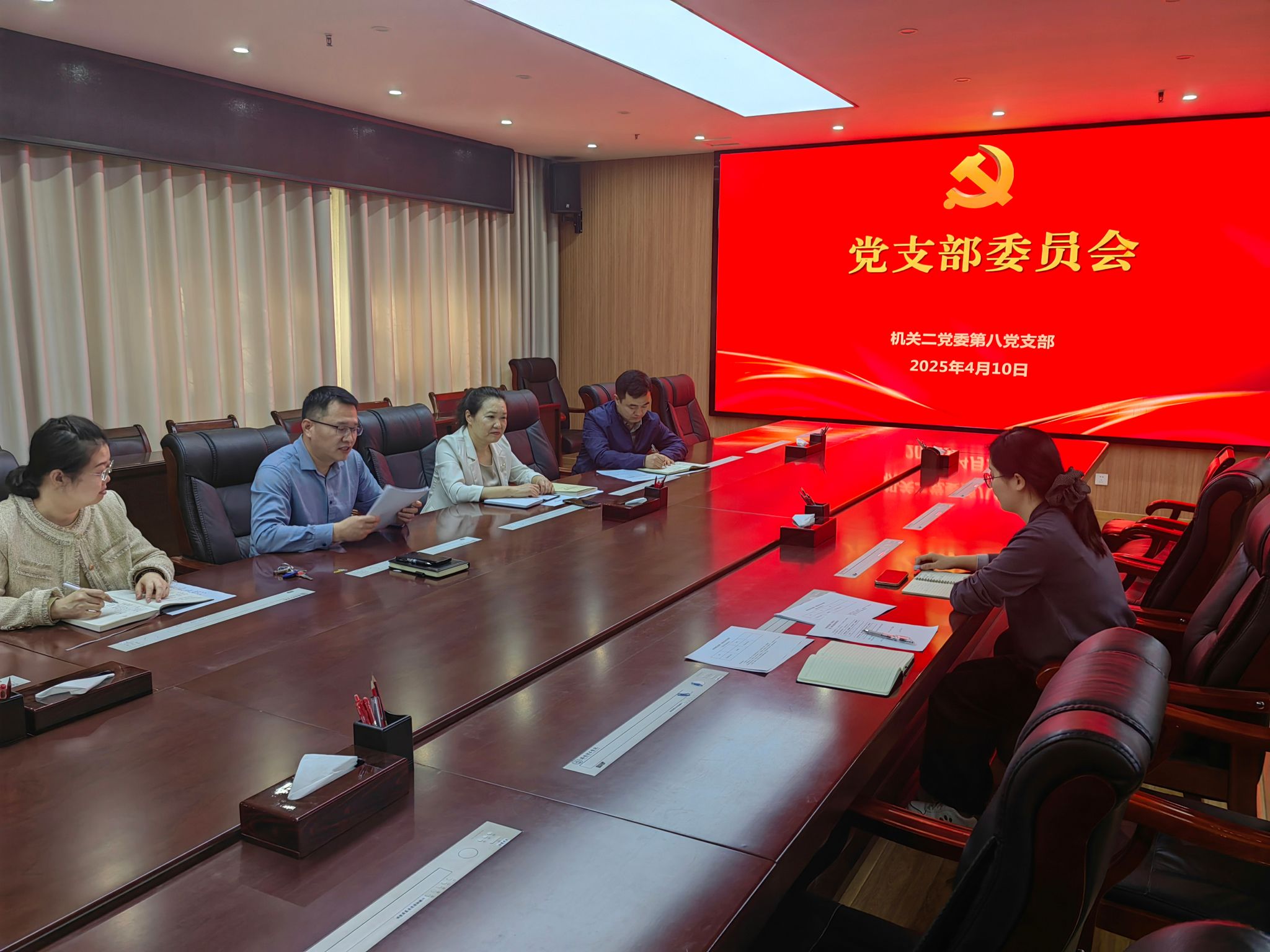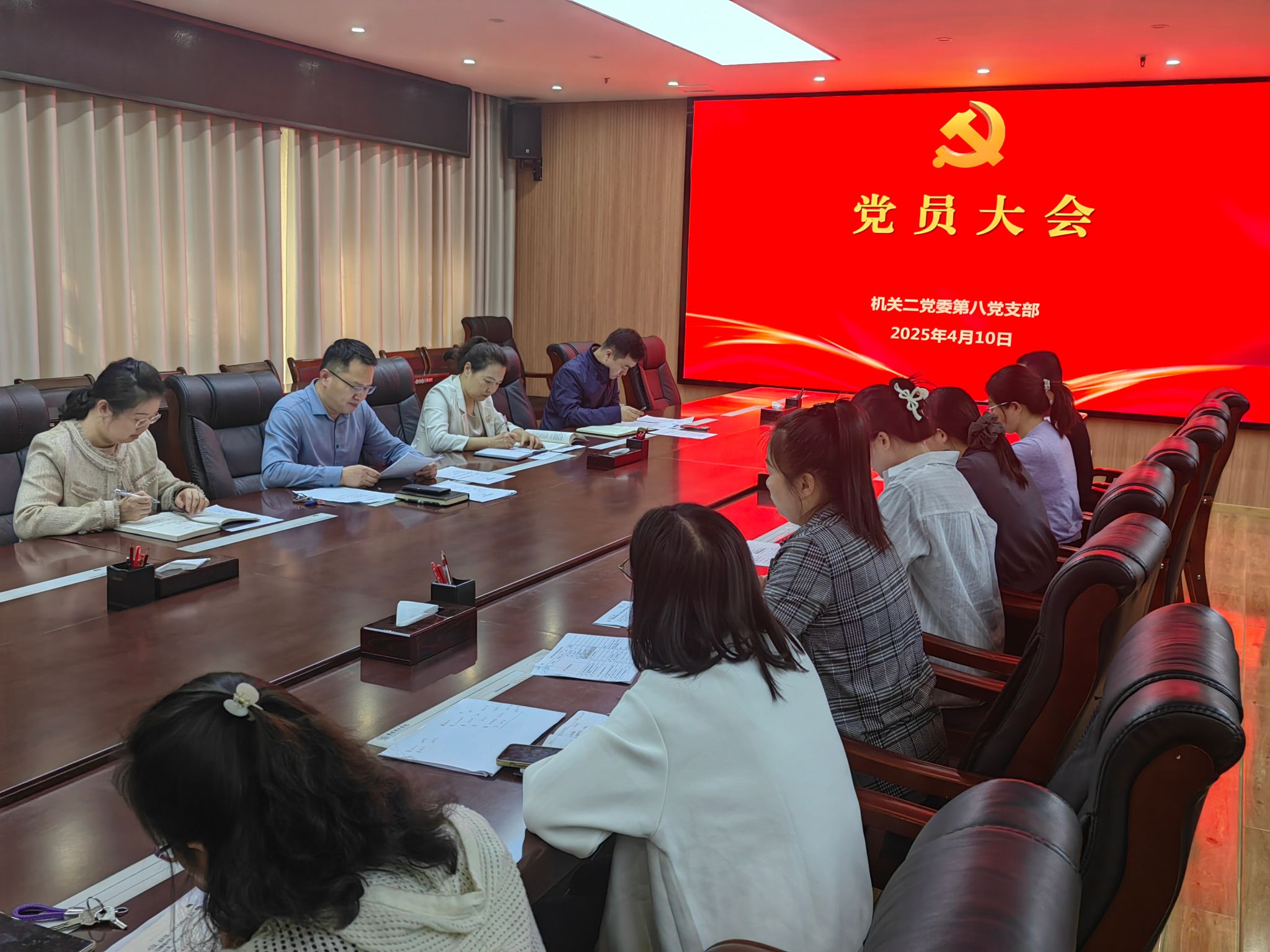 4月10日,机关二党委财务处党支部党员大会在行政楼116会议室举行,支部全体党员参加会议。会议由支部书记杨明伟同志主持。