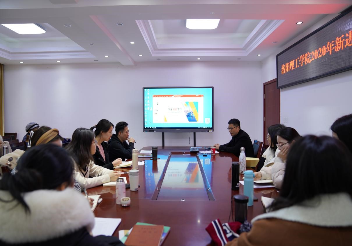 王雪峰老师向各位老师介绍了我校2020年学生资助总体情况;学生资助的发展、意义、目标与作用;我校资助工作的工作体系、特点;资助工作的方法和要求以及资助工作的发展趋势等内容。希望在座的各位老师在即将到来的工作中,多关注困难学生群体,努力做一名热心帮扶的辅导员老师。;赵啸非老师则按照就业招聘、就业过程管理、就业信息采集工作、就业指导工作等大学生就业工作的工作流程流程,对新进辅导员们进行了讲解。