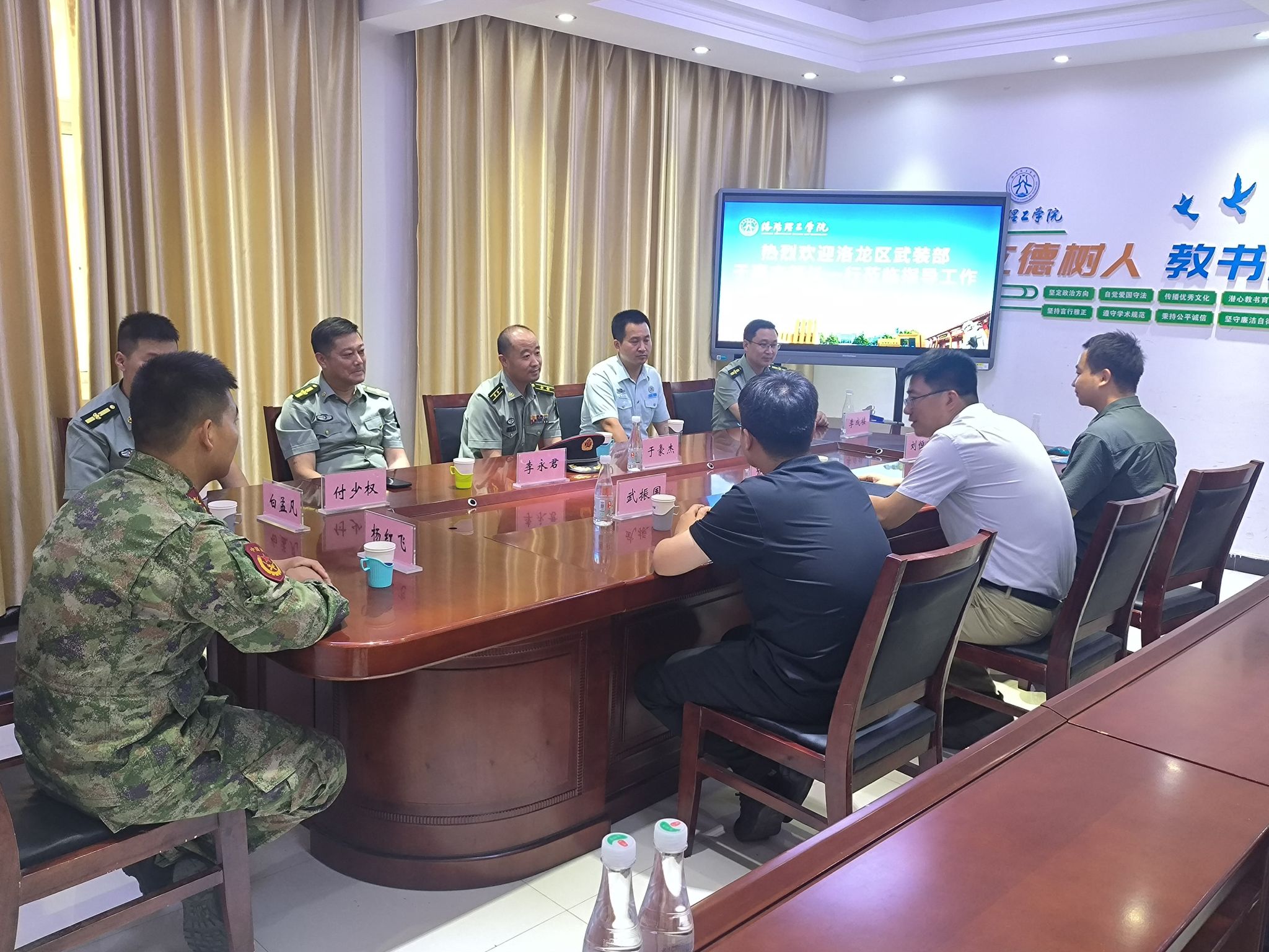 活动结束后,洛龙区武装部副部长于豪杰一行,移步至我校王城校区大学生服务中心106会议室,与我校武装部领导老师开展座谈交流。