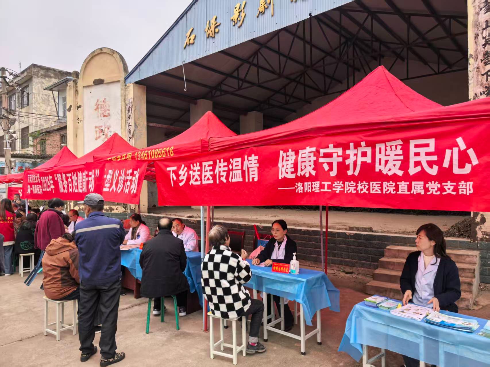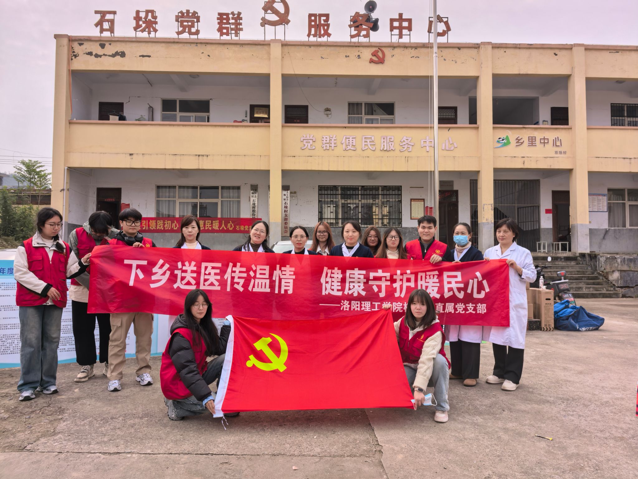 2025年10月23日,乐鱼(中国)校医院直属党支部组织医护人员前往洛阳市宜阳县石垛村开展公益义诊活动,星火社团学生主动参与协助,以专业的服务为村民送上健康关怀。