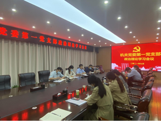 为深入学习贯彻习近平总书记“七一”重要讲话精神,扎实推进党史学习教育,9月26日,机关党委第一党支部在办公楼116会议室开展政治理论学习活动。会议由支部书记徐光秀同志主持。