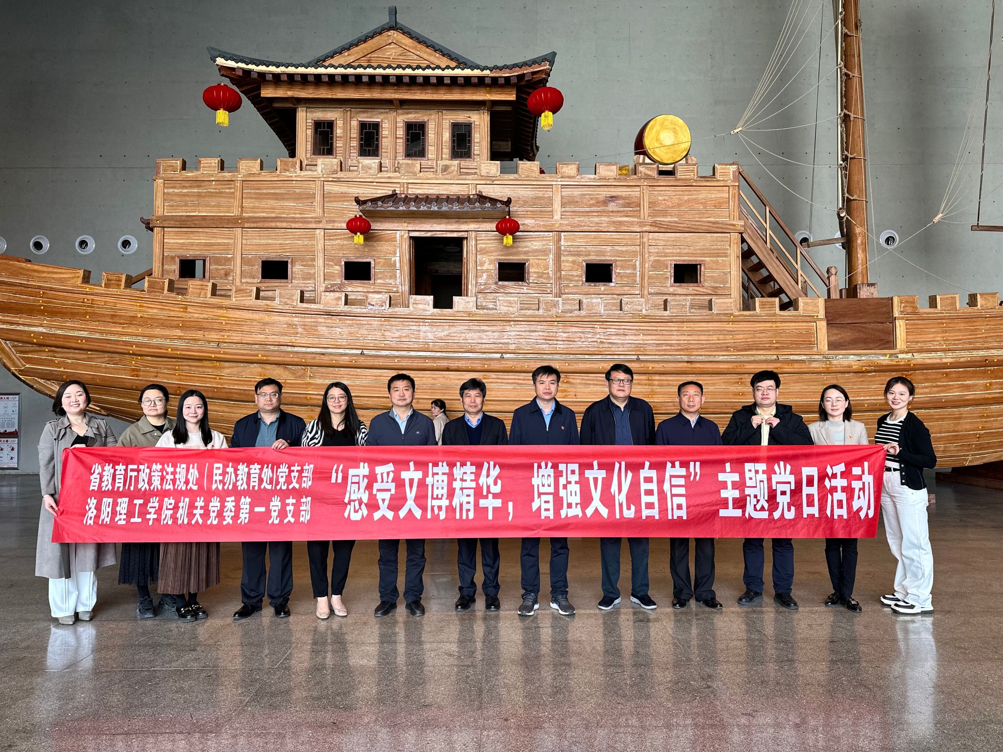 3月31日上午,乐鱼(中国)机关党委第一党支部与省教育厅政策法规处(民办教育处)党支部,联合开展“传承红色基因,赓续红色血脉”和“感受文博精华,增强文化自信”主题党日活动,深入学习宣传贯彻党的二十大精神,了解革命发展历程,感悟时代脉搏,凝聚起党员干部建设教育强省的强大合力。校党委副书记、工会主席曾涛以普通党员身份参加此次活动。活动中,大家集体参观了中共洛阳组纪念馆和隋唐大运河文化博物馆。