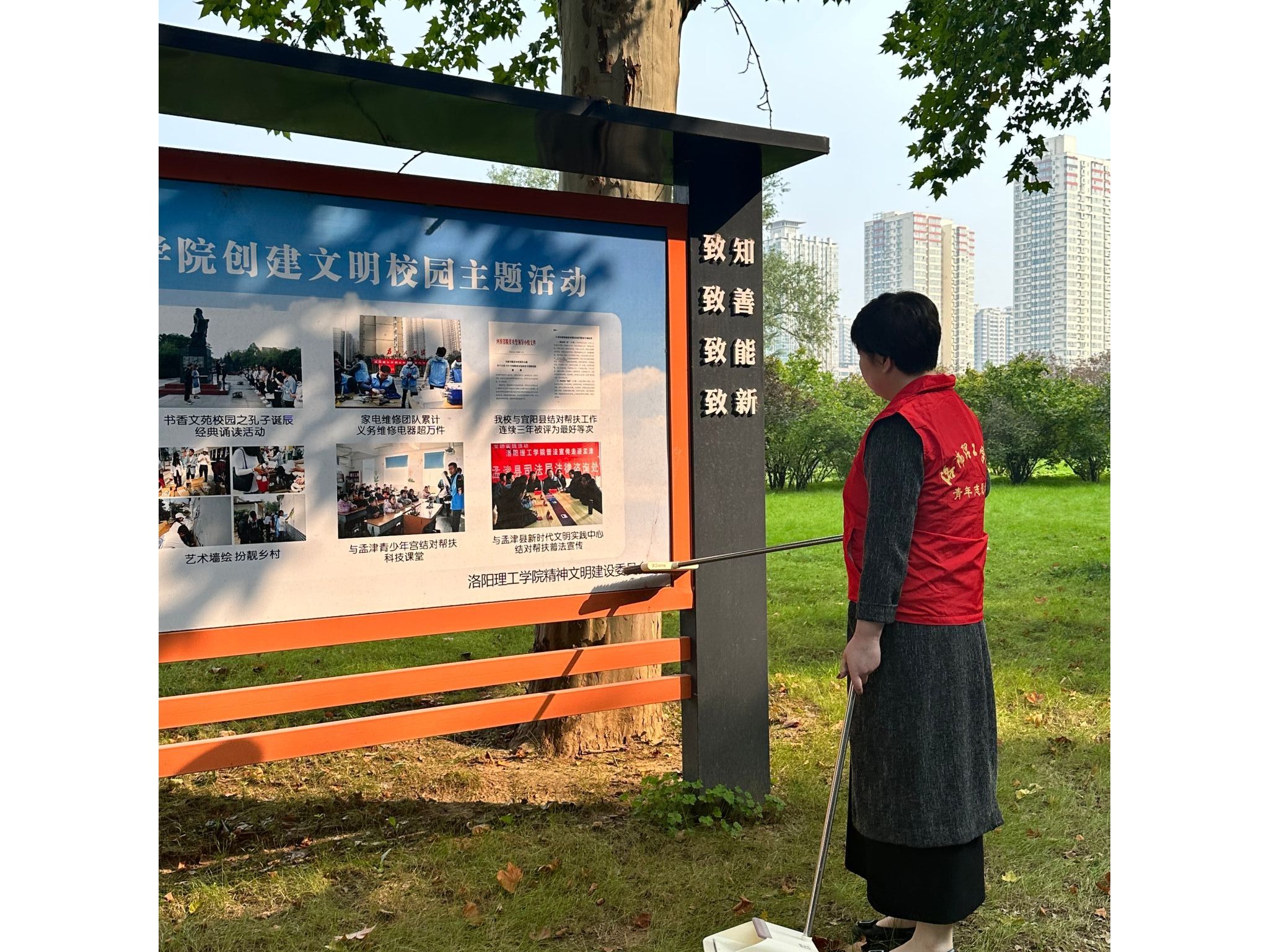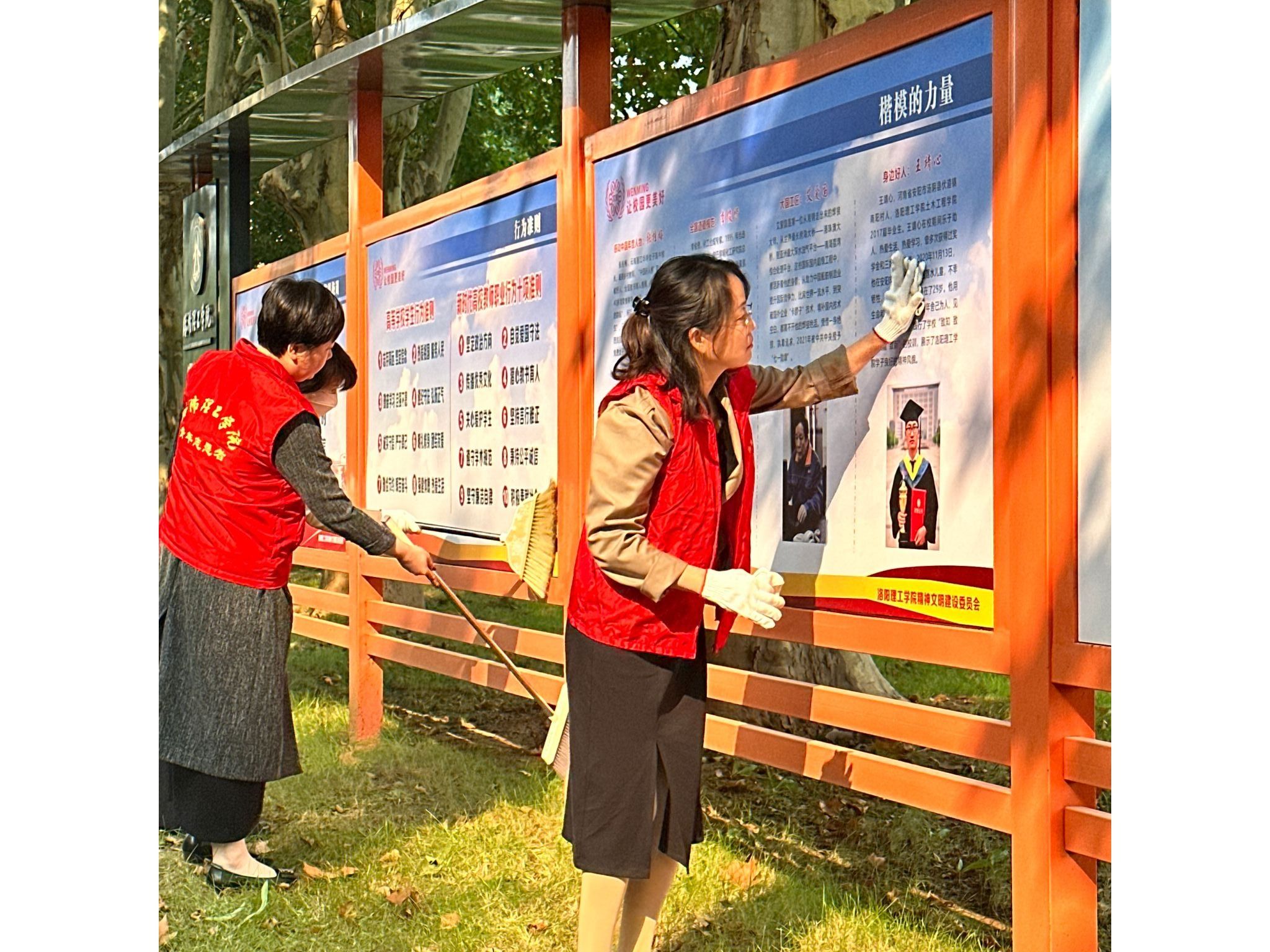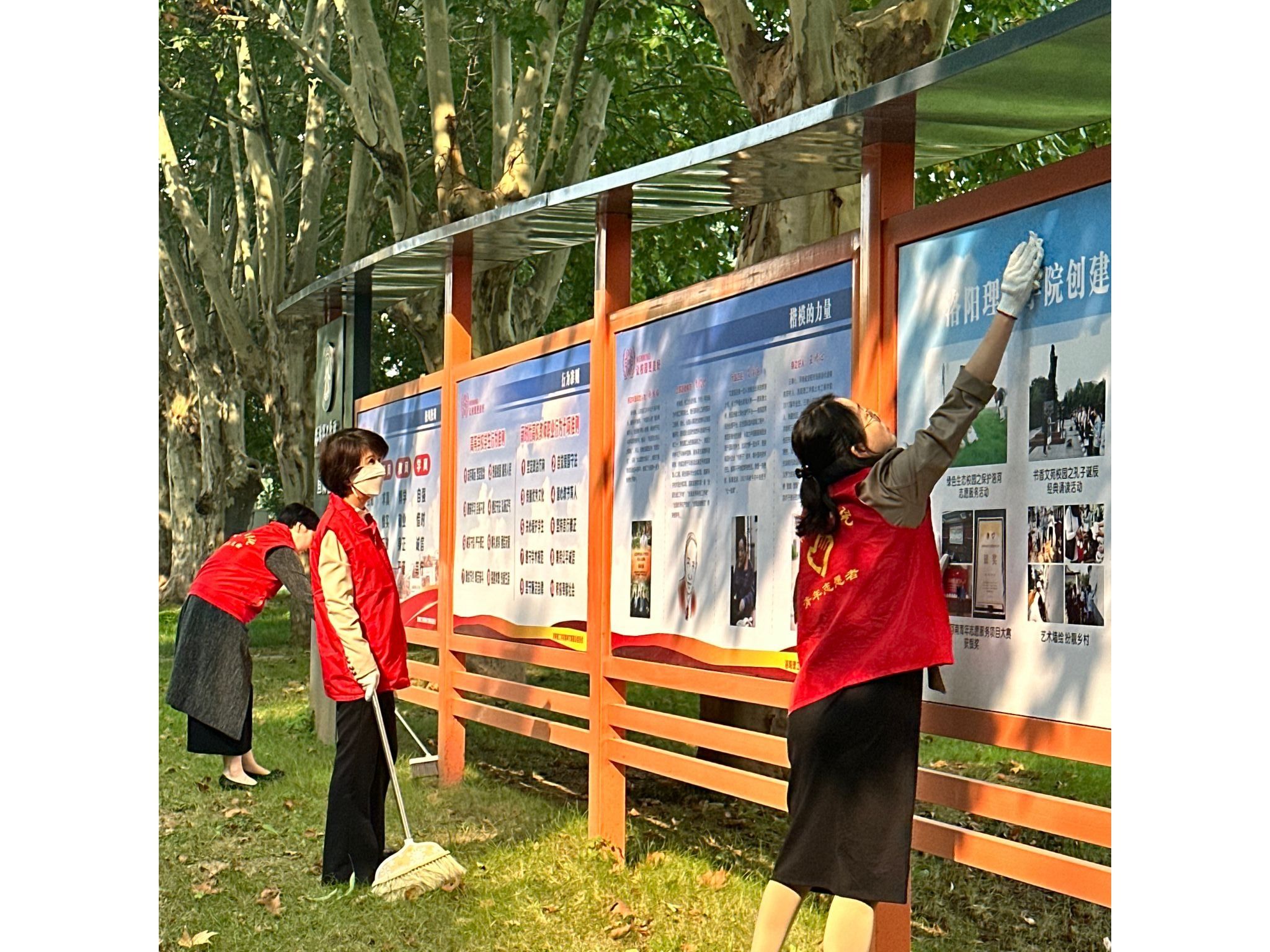活动中,志愿者们身穿红马甲,手拿扫帚、垃圾袋等工具,清扫散落的断枝落叶、杂物等。大家齐心协力,分工合作,有的负责清扫道路落叶,有的相互协作清理地上散落的垃圾和纸屑。经过近一个小时的辛勤劳动,草坪、花坛、文化宣传栏焕然一新。从办公楼到教学楼,志愿者们并肩劳作,热情高涨,师生校园行走的必经之路被清扫干净,为金秋的校园增添了一幅温暖画卷。