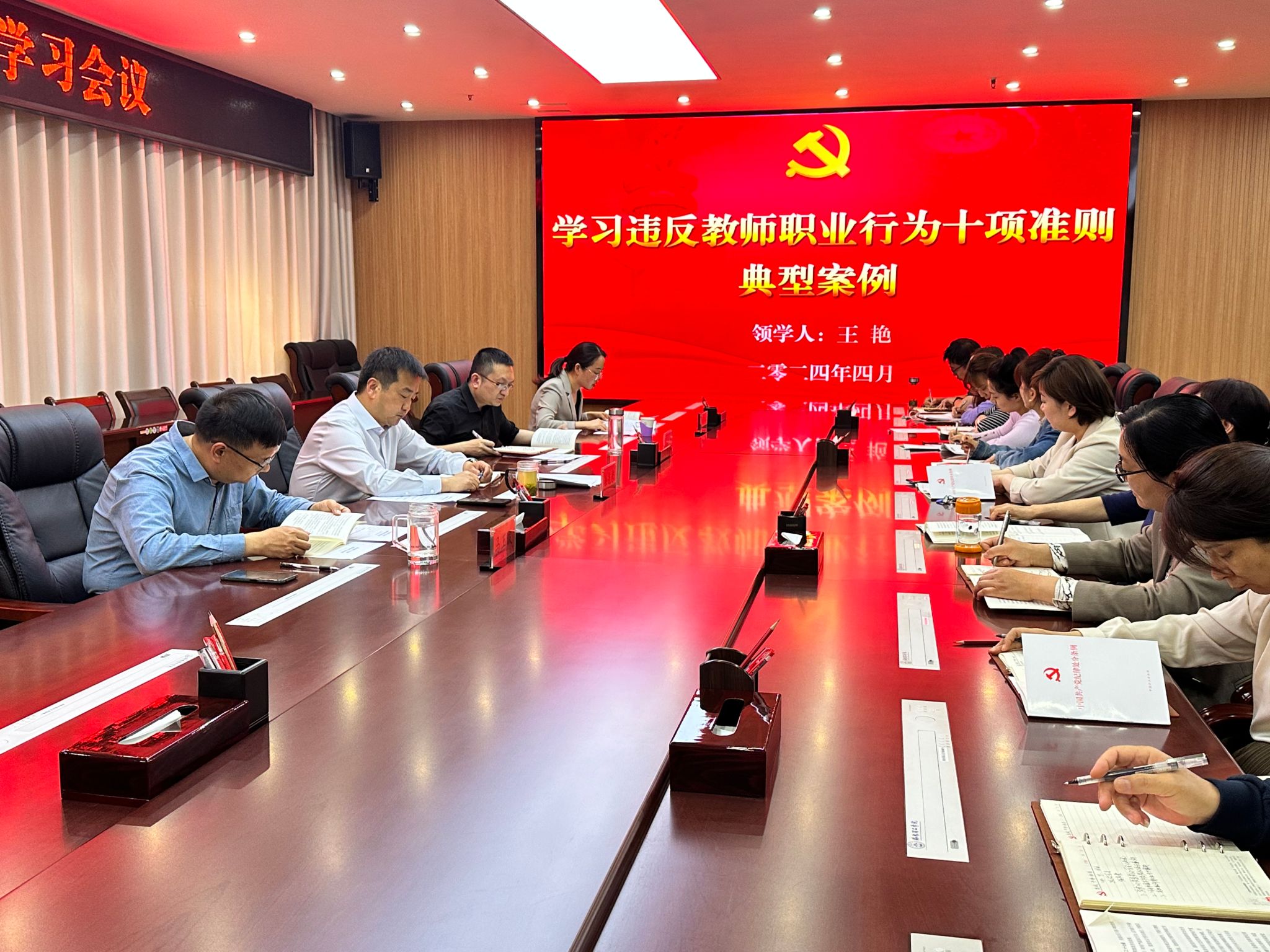 随后,支部副书记王艳同志带领大家回顾了教师职业行为十项准则的主要内容,学习了《教育部公开曝光违反教师职业行为十项准则典型案例》的内容。她强调,这些案例令人深思,令人警醒,希望党支部全体党员干部通过对典型案例的学习,引以为戒,切实增强遵守教师职业行为十项准则的思想自觉和行动自觉。
