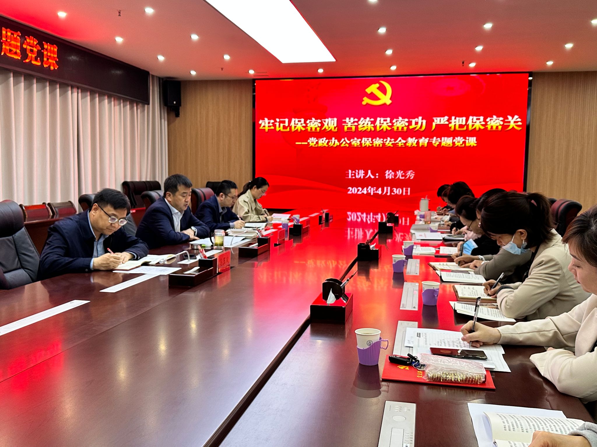 4月30日上午,机关党委第一党支部在办公楼116会议室召开党纪学习教育工作会议。党支部书记徐光秀同志以《牢记保密观,苦练保密功,严把保密关》为题做保密安全教育专题党课。支部全体党员参加会议。