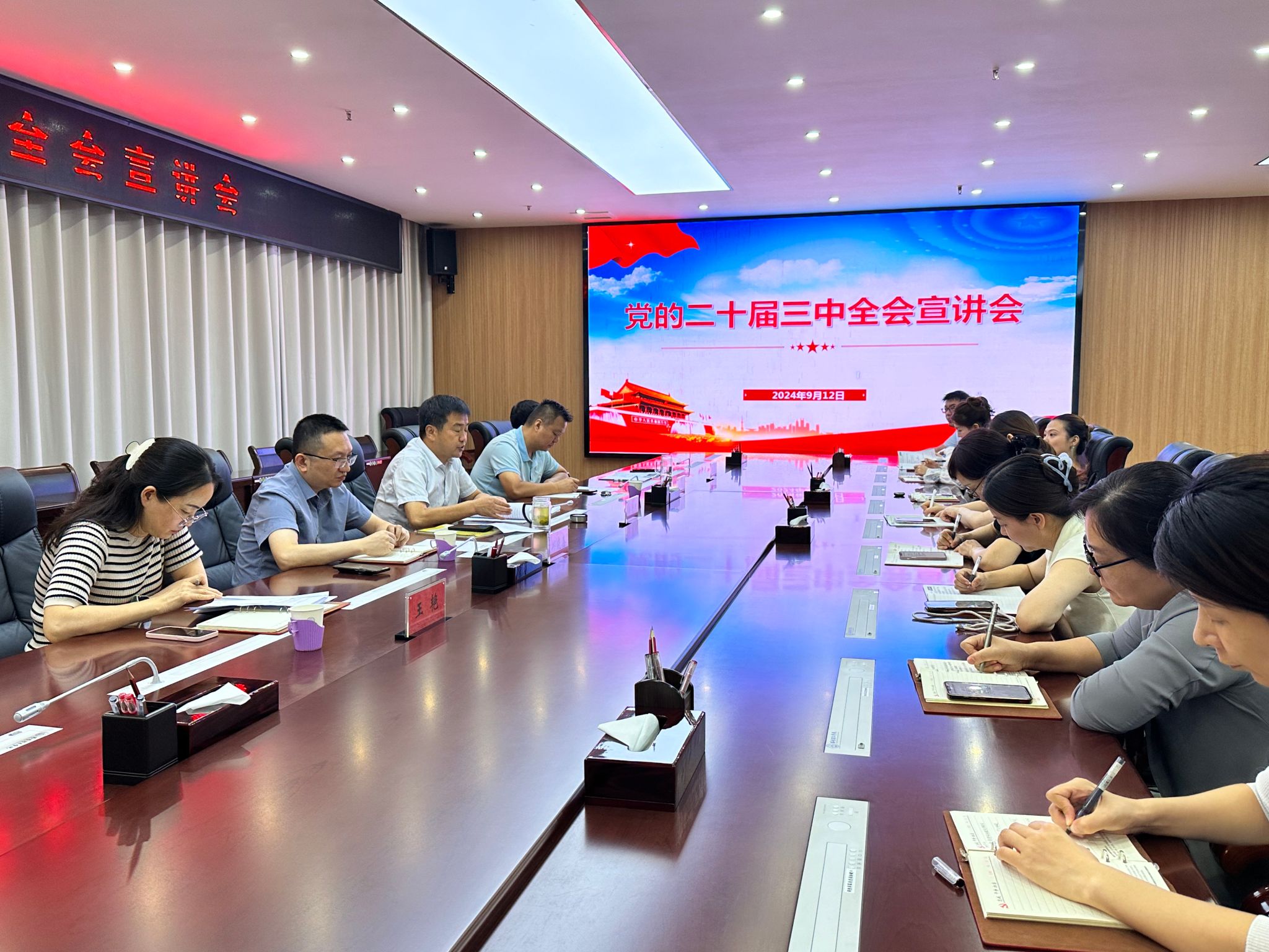 为进一步深入学习贯彻党的二十届三中全会精神,深刻领会全会的重大意义,推动会议精神落地生根。9月12日上午,机关党委第一党支部召开党的二十届三中全会宣讲会,支部书记徐光秀同志带领党支部全体党员认真学习领会党的二十届三中全会精神。
