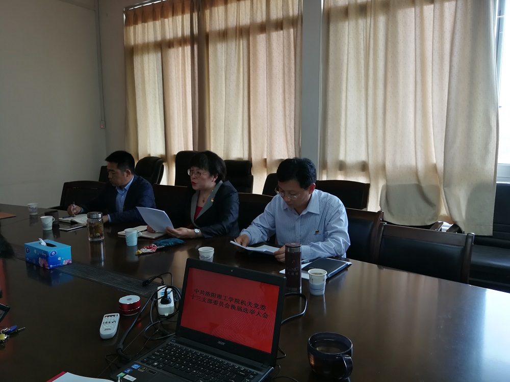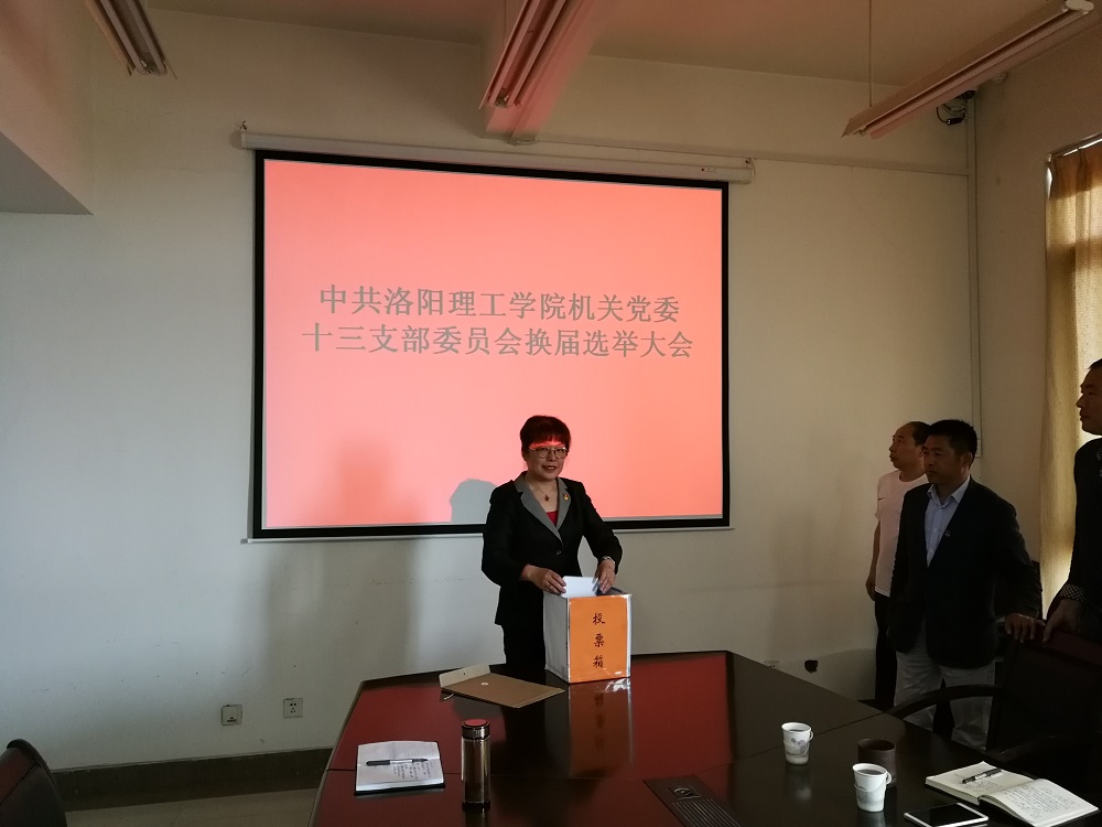 2018年4月19日下午,伴随着庄严的国歌声,机关党委第十三支部隆重召开了第四届支部委员换届选举大会。严格按照《关于做好基层党支部换届工作的通知》(党发〔2018〕11号)文件要求和选举程序,会议最终选出了以汪丽萍同志为机关党委第十三支部书记、刘孟贺同志为组织委员、仲昭麟同志为宣传兼纪检委员的新一届支委。