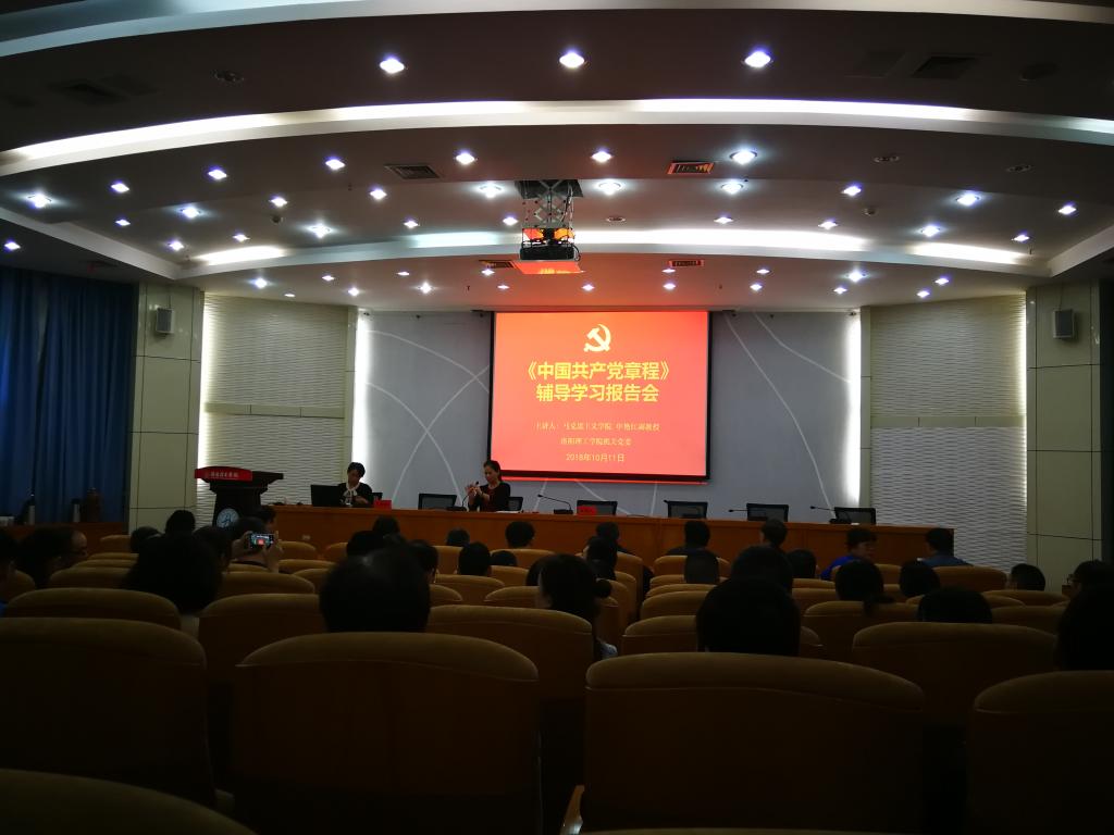 10月11日下午,机关党委十三支部邀请我校马克思主义学院申艳红副教授对支部全体党员同志进行了新党章辅导学习报告。会议在行政办公楼二楼报告厅举行。