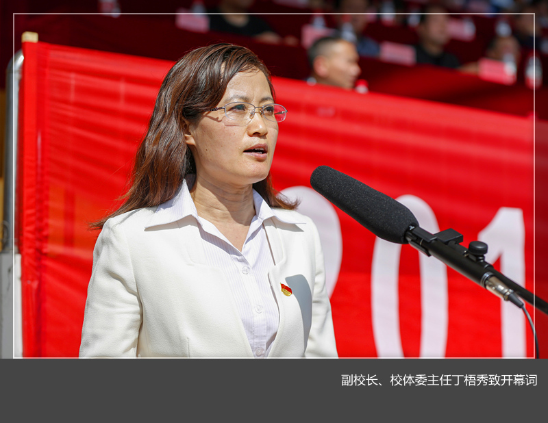 副校长、校体委主任丁梧秀致开幕词。她代表学校对本届运动会的顺利举行表示热烈的祝贺,向精心筹备运动会的工作人员表示诚挚的谢意,向积极参加运动会的广大教工和同学们致以亲切的问候。她说,我校高度重视体育工作,在全体师生共同努力下,我校体育运动氛围日趋浓厚,竞技水平明显提高,在体育竞赛和群众体育运动方面取得了骄人成绩,树立了良好的社会形象。一年一度的运动会,既有力量的角逐和智慧的较量,也有活力的展示和道德素养的比拼,既是对我校体育工作、师生体育素质和精神风貌的全面展示,也是对老师和同学们集体意识、拼搏精神、竞技水平的一次集中检阅检验,必将助力谱写我校事业高质量发展新的华章。最后,她预祝运动员们取得佳绩,运动会圆满成功。