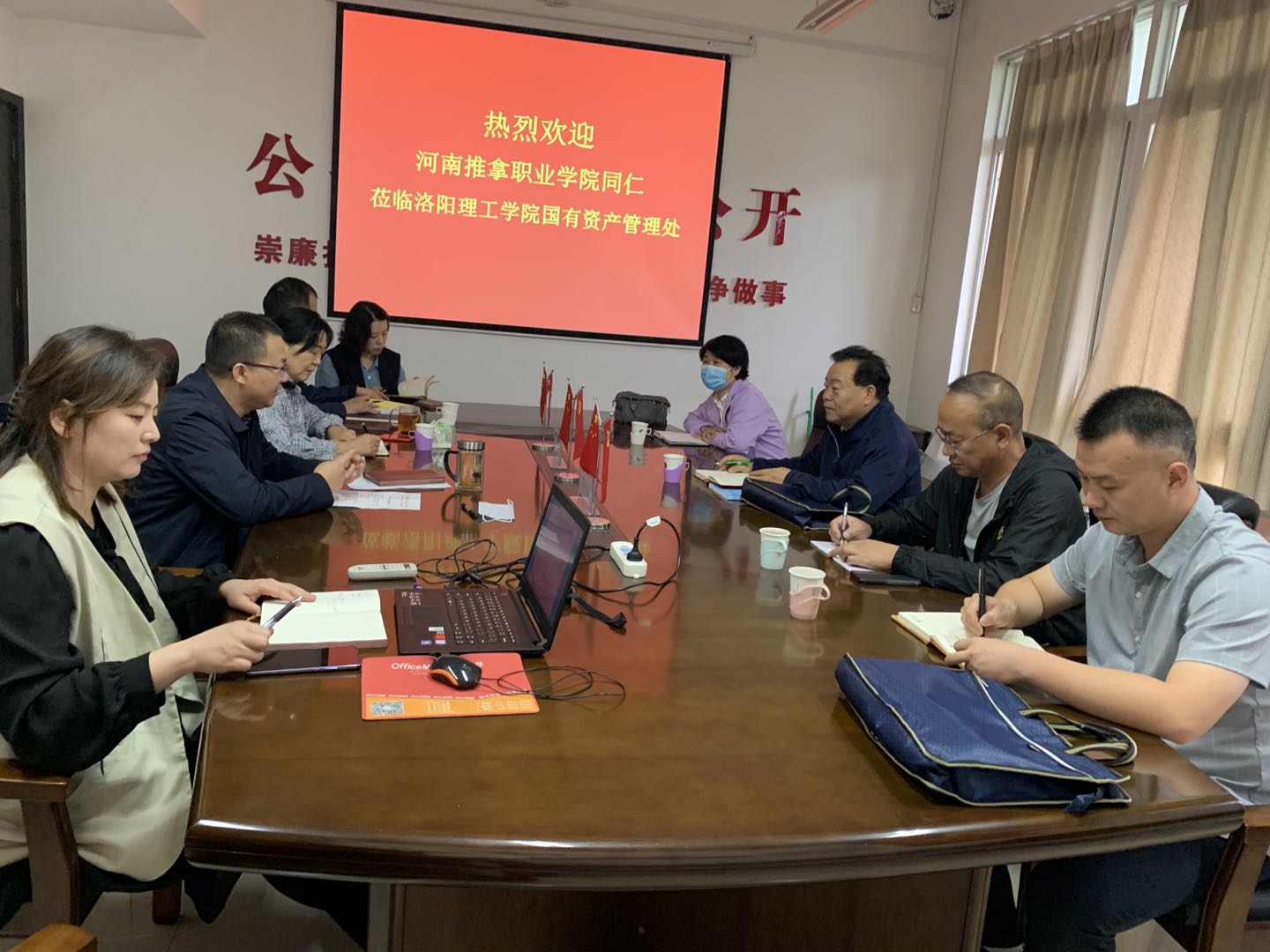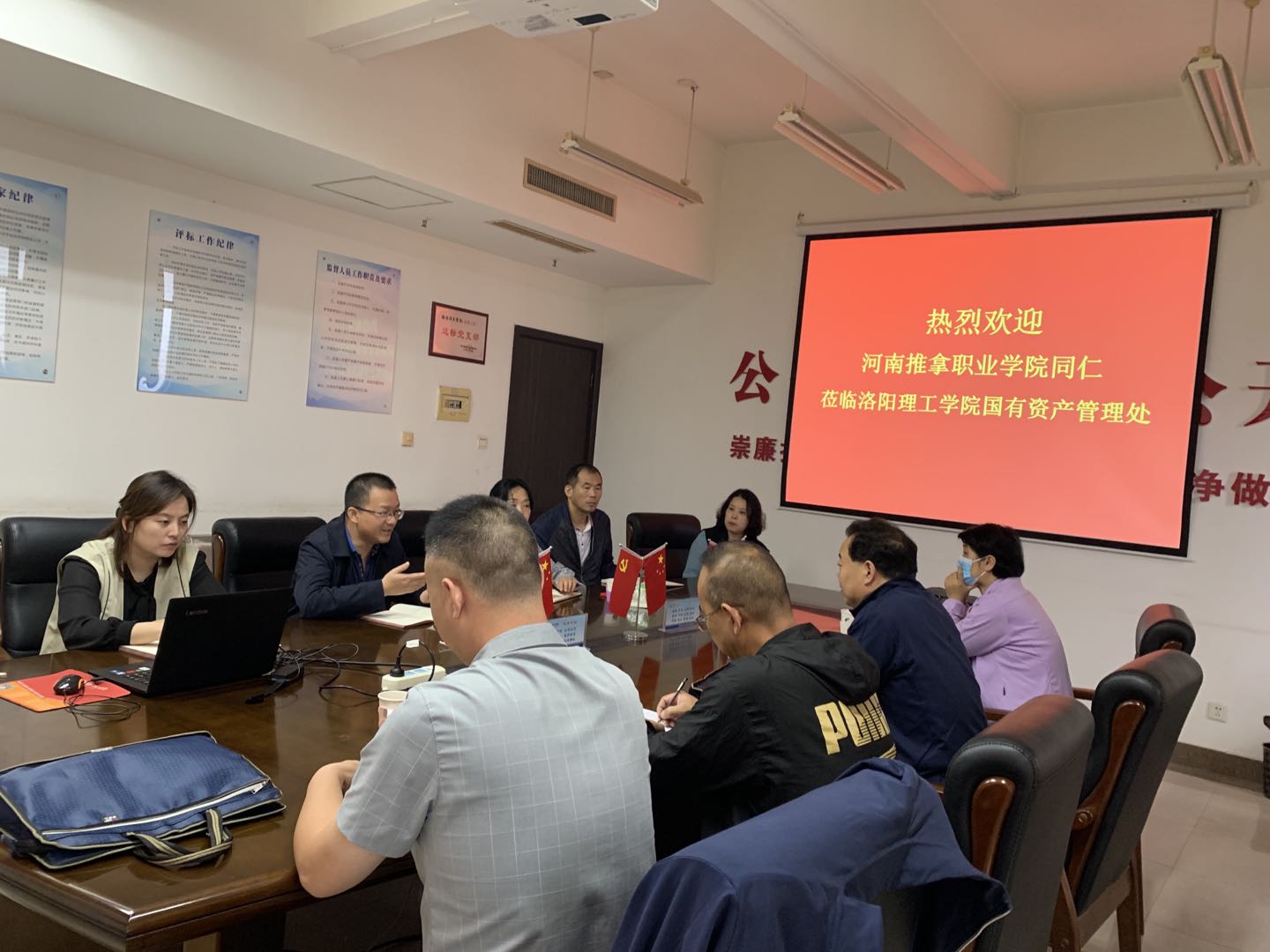 9月28日上午,河南推拿职业学院国有资产管理处处长燕书立等一行4人来我处考察交流。国有资产管理处处长邓志中,副处长张君晓及相关科室同志在王城校区办公楼511会议室与来宾进行了座谈。