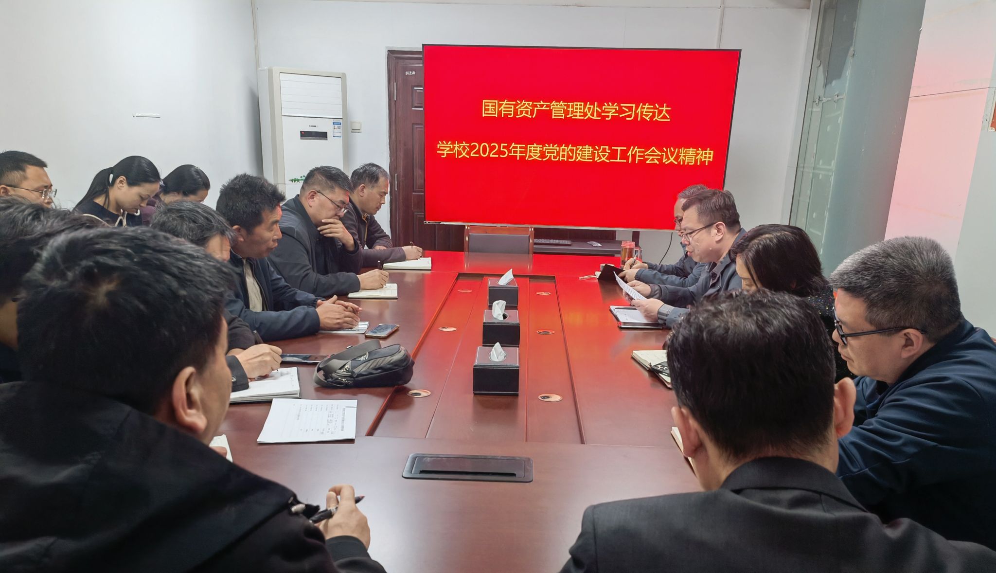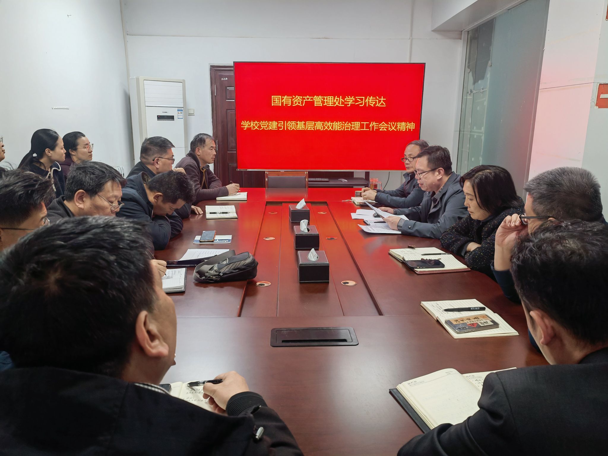 3月20日下午,国有资产管理处召开会议,学习传达学校2025年度党的建设工作会议、2025年度全面从严治党工作会议、党建引领基层高效能治理工作推进会、深入贯彻中央八项规定精神学习教育等会议精神。国有资产管理处全体成员参加会议,会议由处长王洪刚主持。