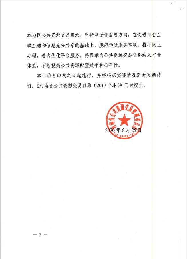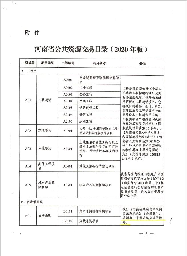【政策法规】河南省公共资源交易管理委员会关于印发《河南省公共资源交易目录(2020版)》的通知