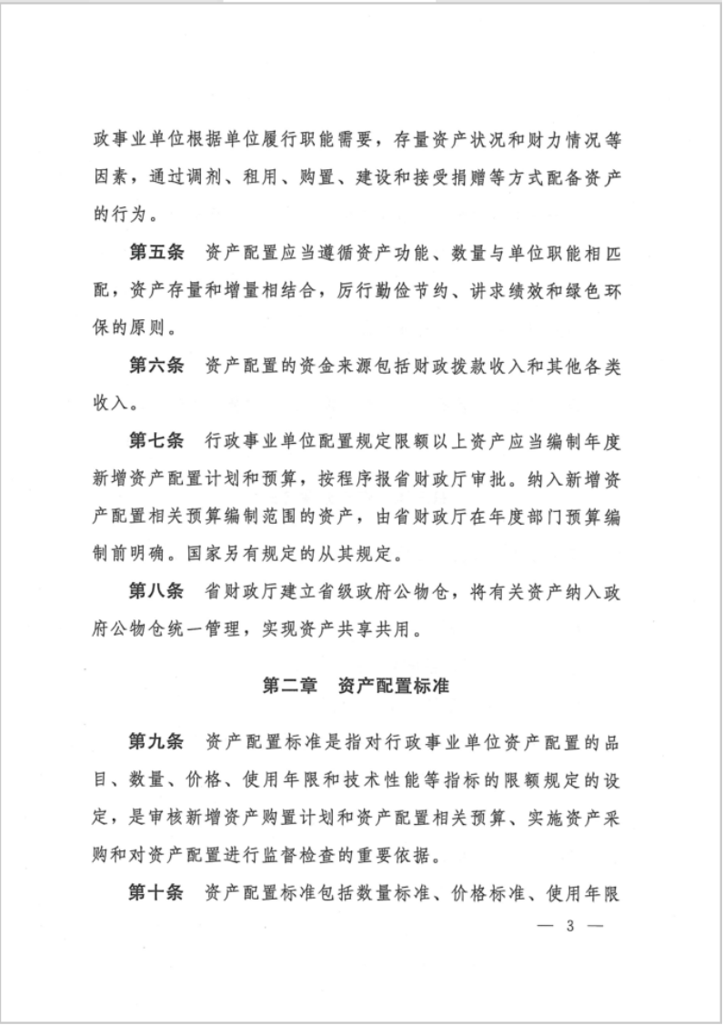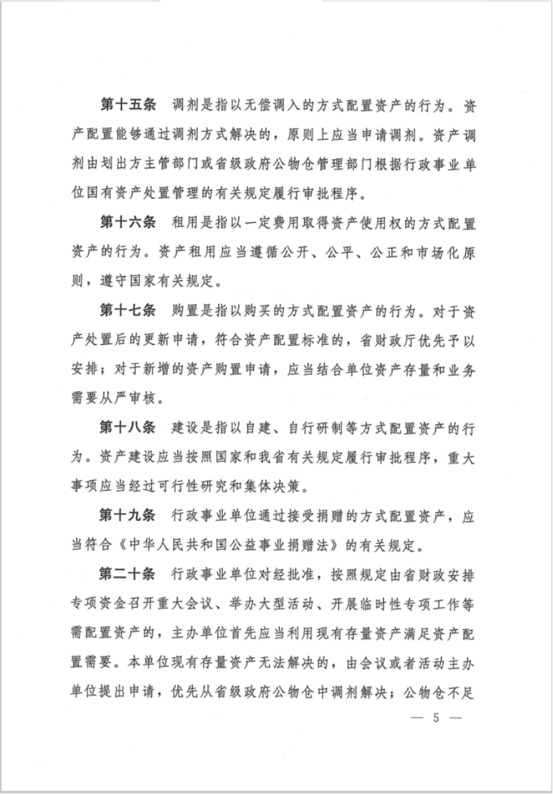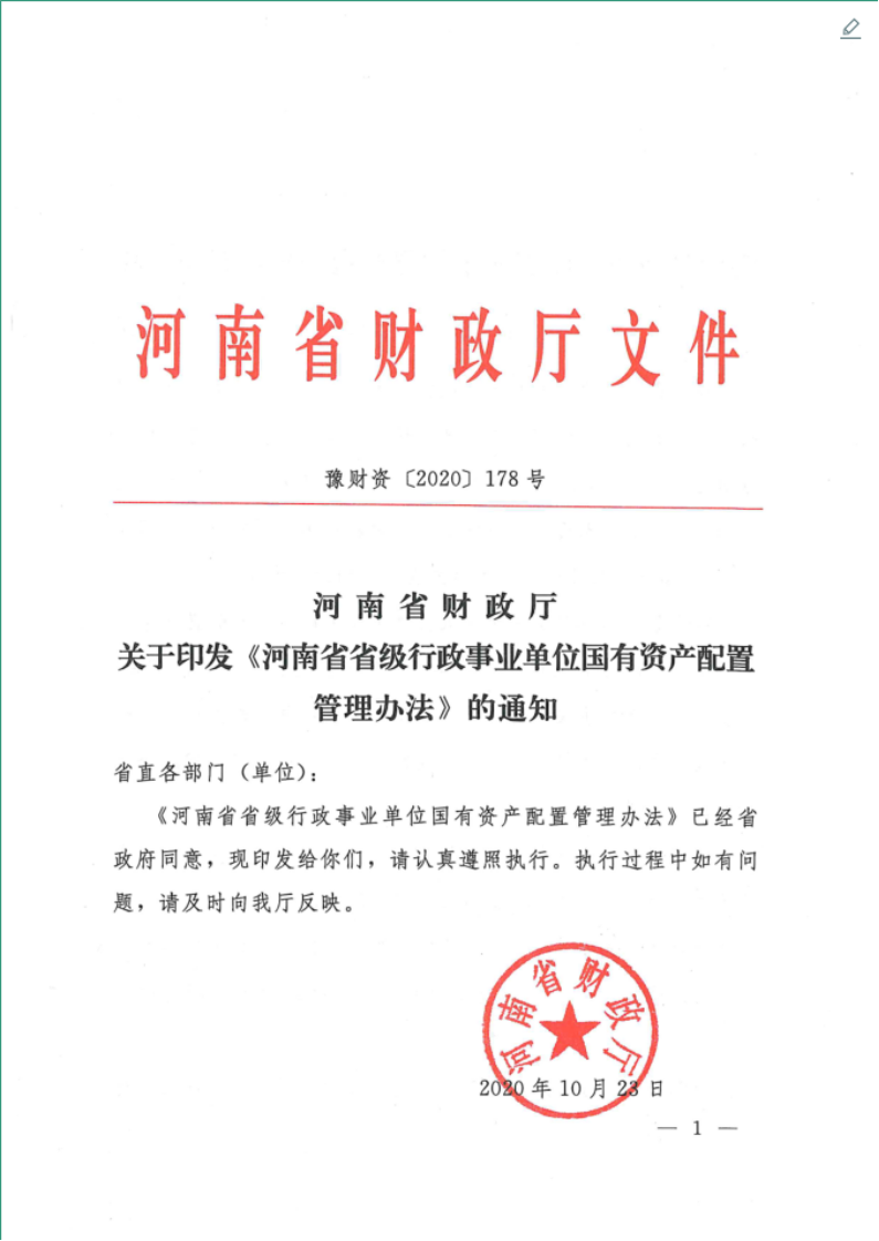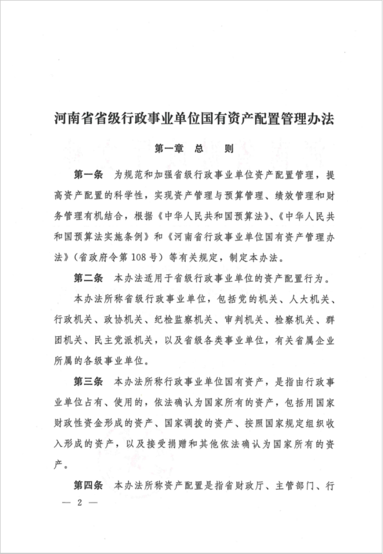 【政策法规】河南省省级行政事业单位国有资产配置管理办法