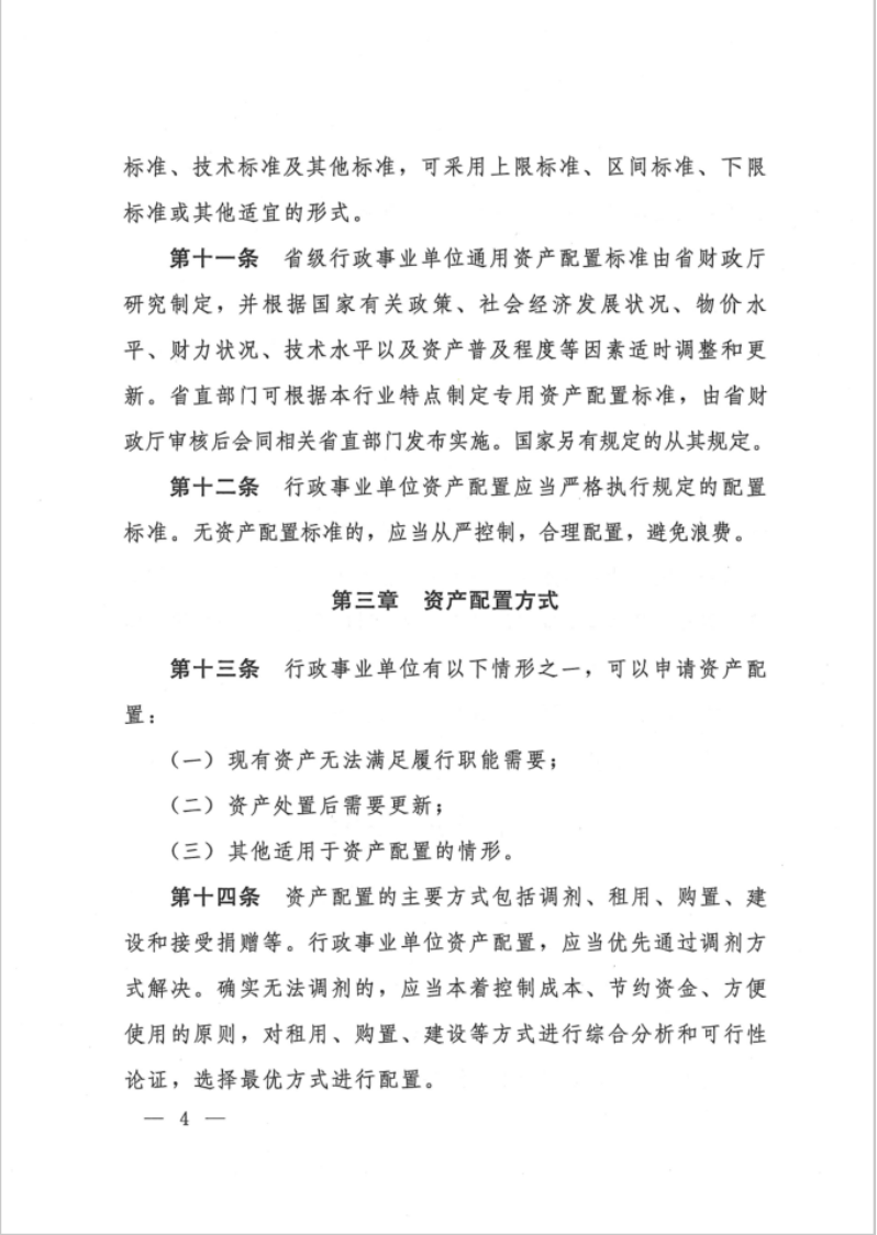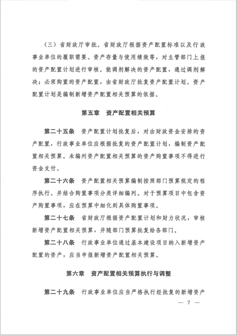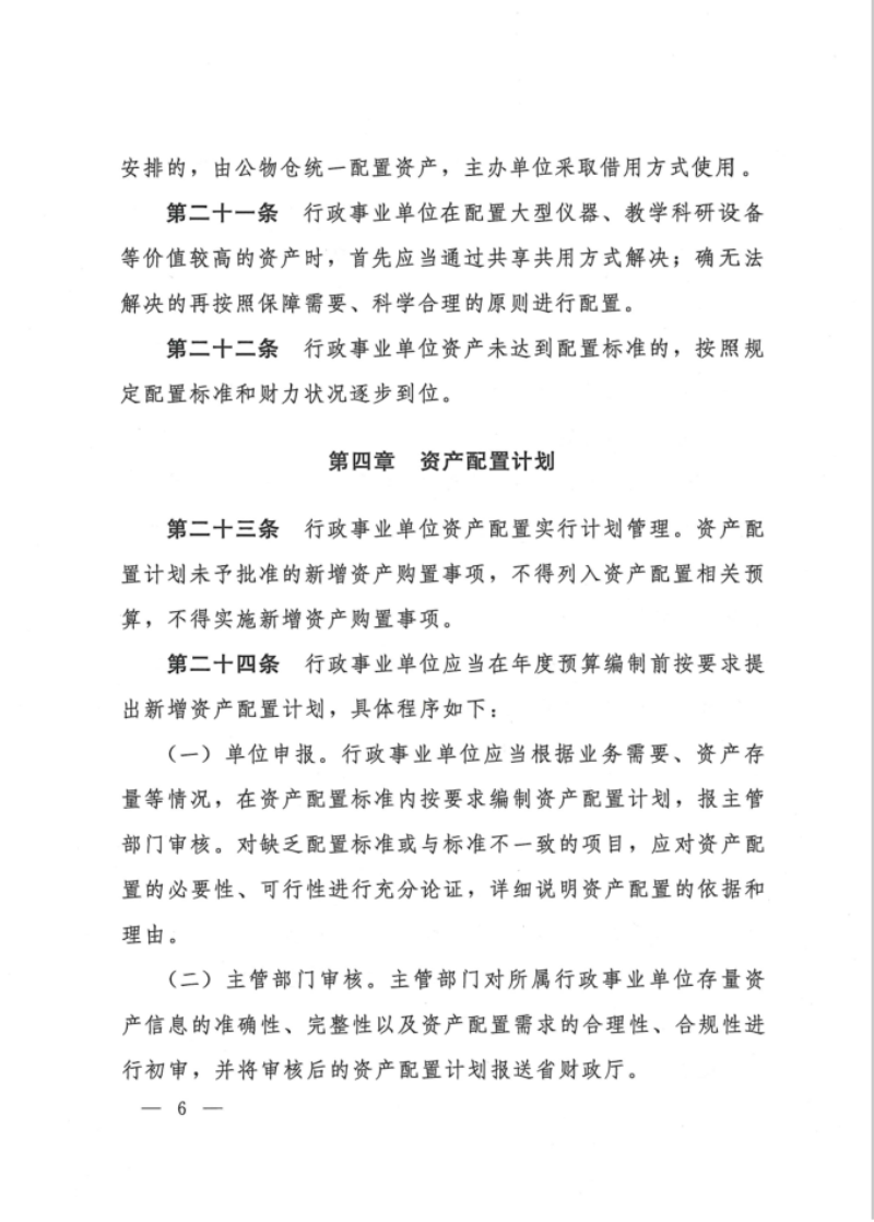 【政策法规】河南省省级行政事业单位国有资产配置管理办法