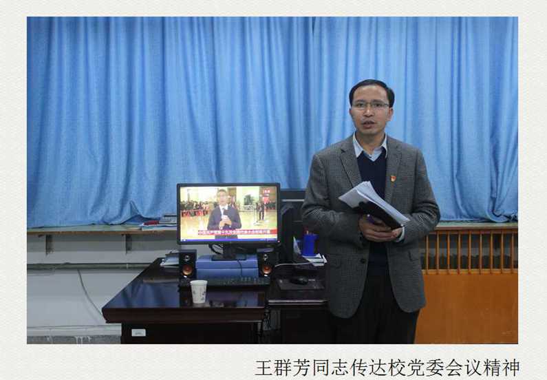 全体党员同志佩戴党员徽章,认真聆听学习了习近平总书记代表第十八届中央委员会向大会做的报告。习近平同志的报告振奋人心,鼓舞士气,全体党员和入党积极分子纷纷表示,要认真贯彻党的十九大精神,在校党委的正确领导下,勇于担当,脚踏实地,为学校的发展做出更大的贡献!