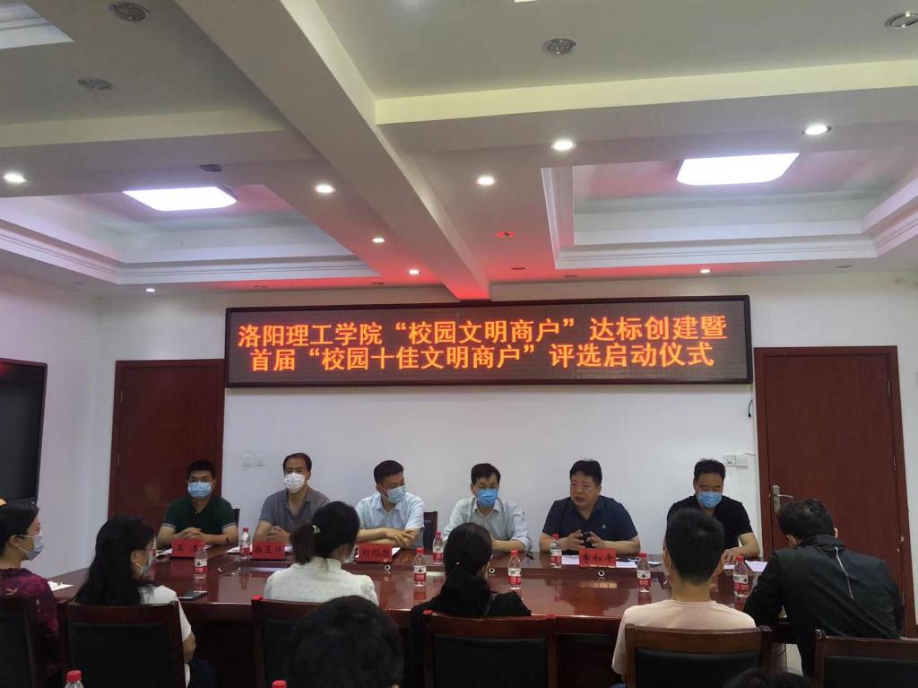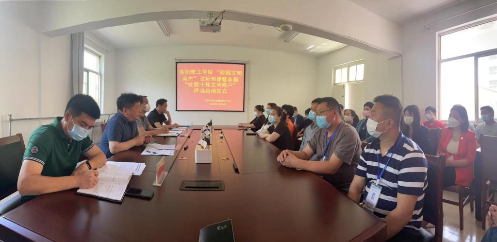 2022年4月26日上午,乐鱼(中国)“校园文明商户”达标创建暨首届“校园十佳文明商户”评选启动仪式在王城校区大学生服务中心一楼106会议室举行。校党委宣传部部长李龙星、学生工作部部长刘湉湉、公司党总支书记李和平、总经理柴玉强、副总经理杨朝良、王浩和相关工作人员以及两校区商户负责人参加会议。会议由李和平主持。
