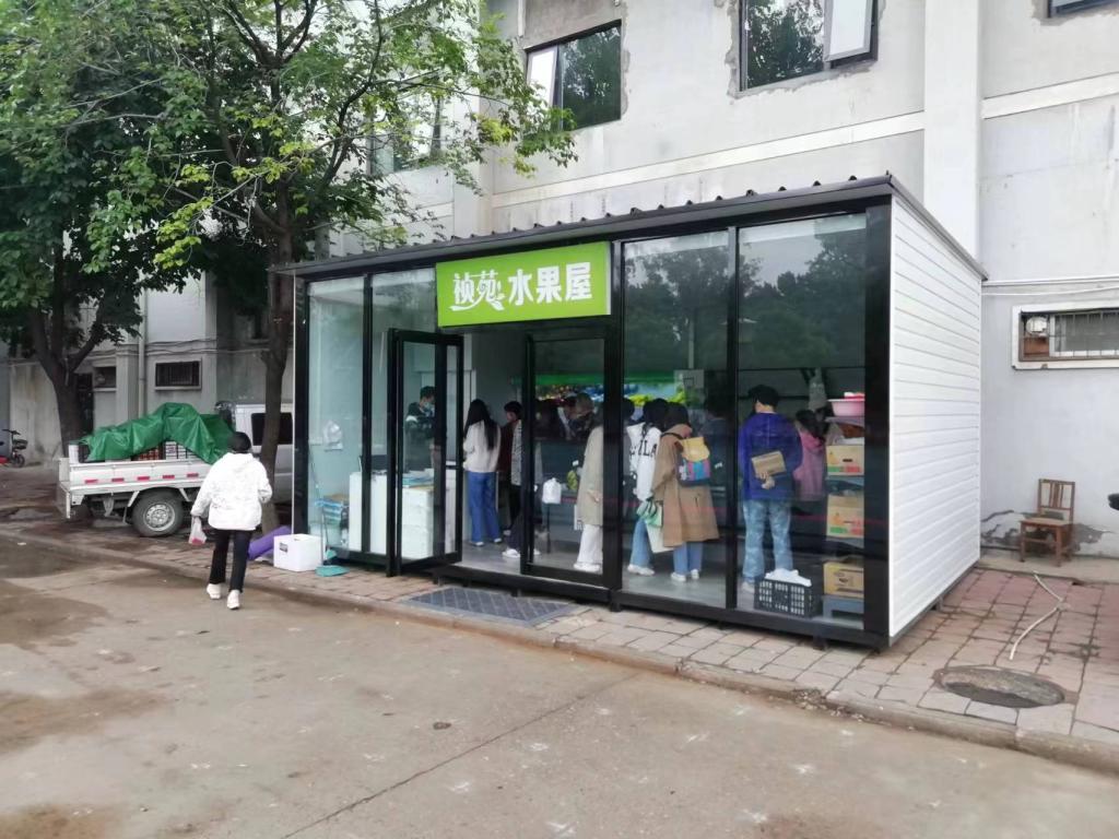 针对九都校区学生们普遍反映的水果需求,资产经营公司立即行动,在九都校区管委会的大力支持和统筹安排下,利用一周的时间,搭建了祯苑水果屋,提供十余种时令水果,解决了学生们吃水果难题,受到了师生们的一致好评。