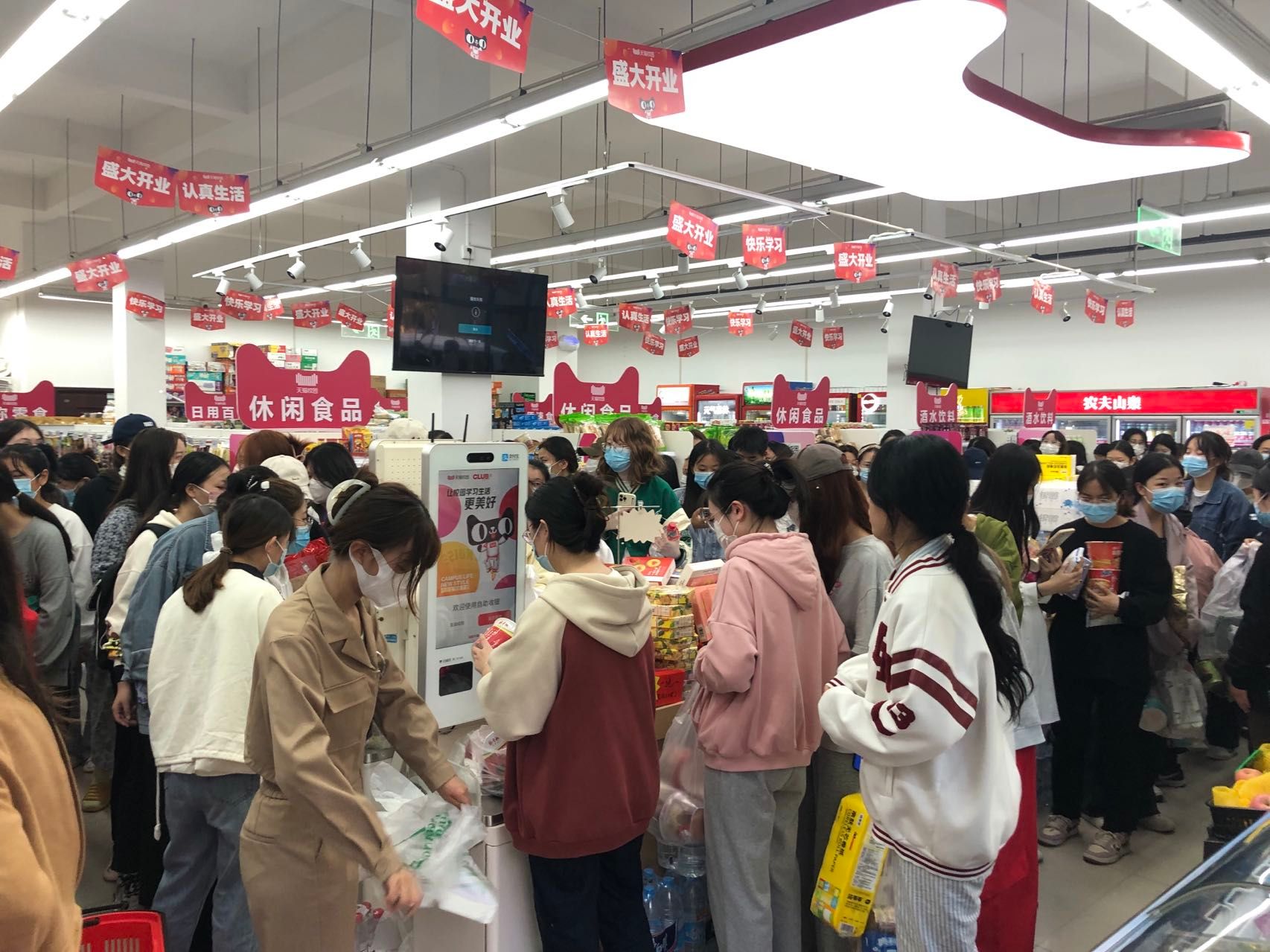 校园封控管理初期,由于学生们不了解实际情况,担心宿舍封闭,出现了到超市抢购商品的情况。公司发现后,第一时间安排专人到各超市进行疏导。一方面,呼吁学生理性消费,不要恐慌,超市物资供应充足,能够保障日常需求;另一方面,把守入口,只出不进,防止购物秩序混乱,引发安全事故。