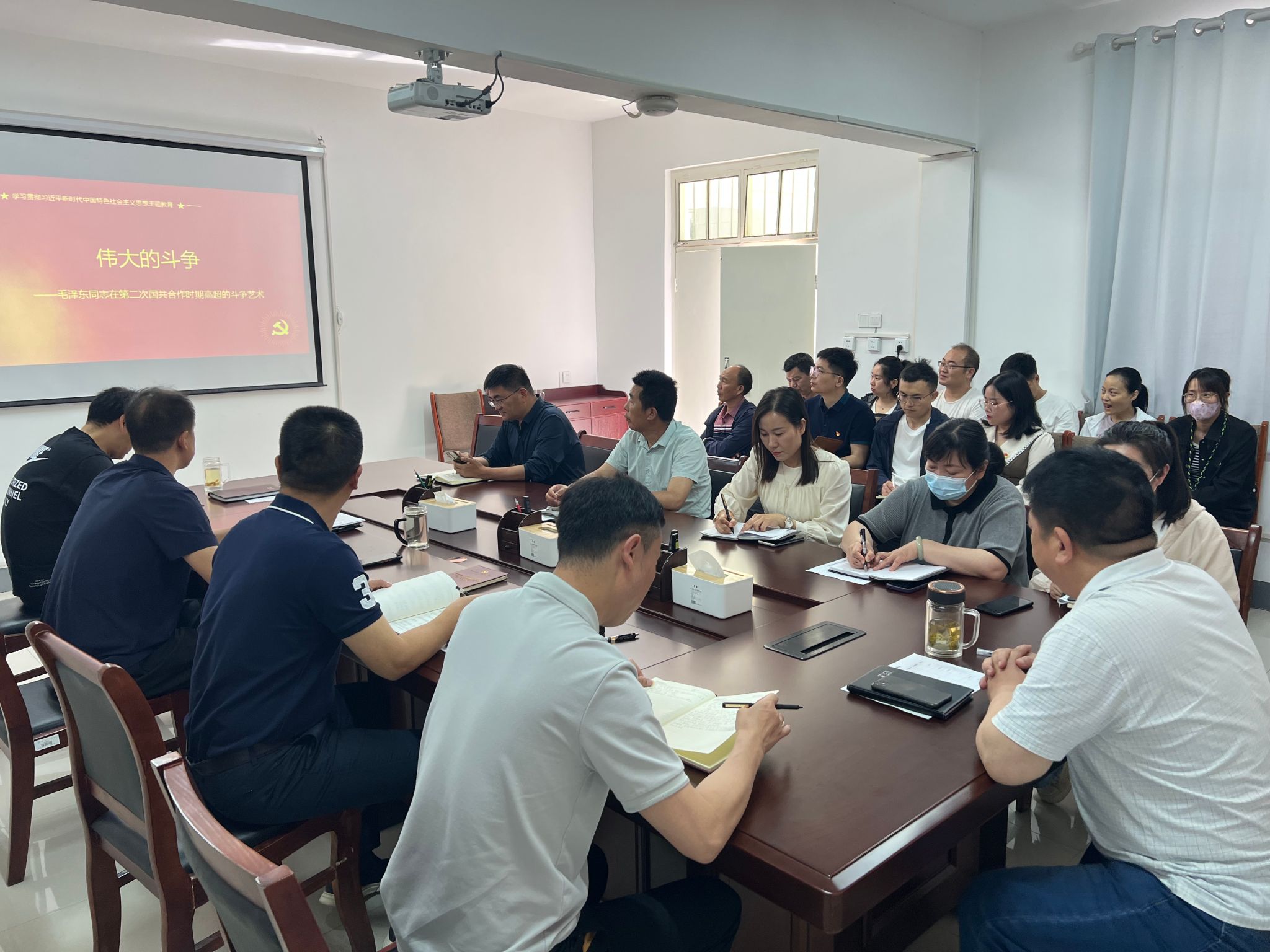 为深入落实学习贯彻习近平新时代中国特色社会主义思想主题教育,5月15日上午,党总支书记李和平给全体党员上了一节题为《伟大的斗争—毛泽东同志在第二次国共合作时期高超的斗争艺术》的专题党课。